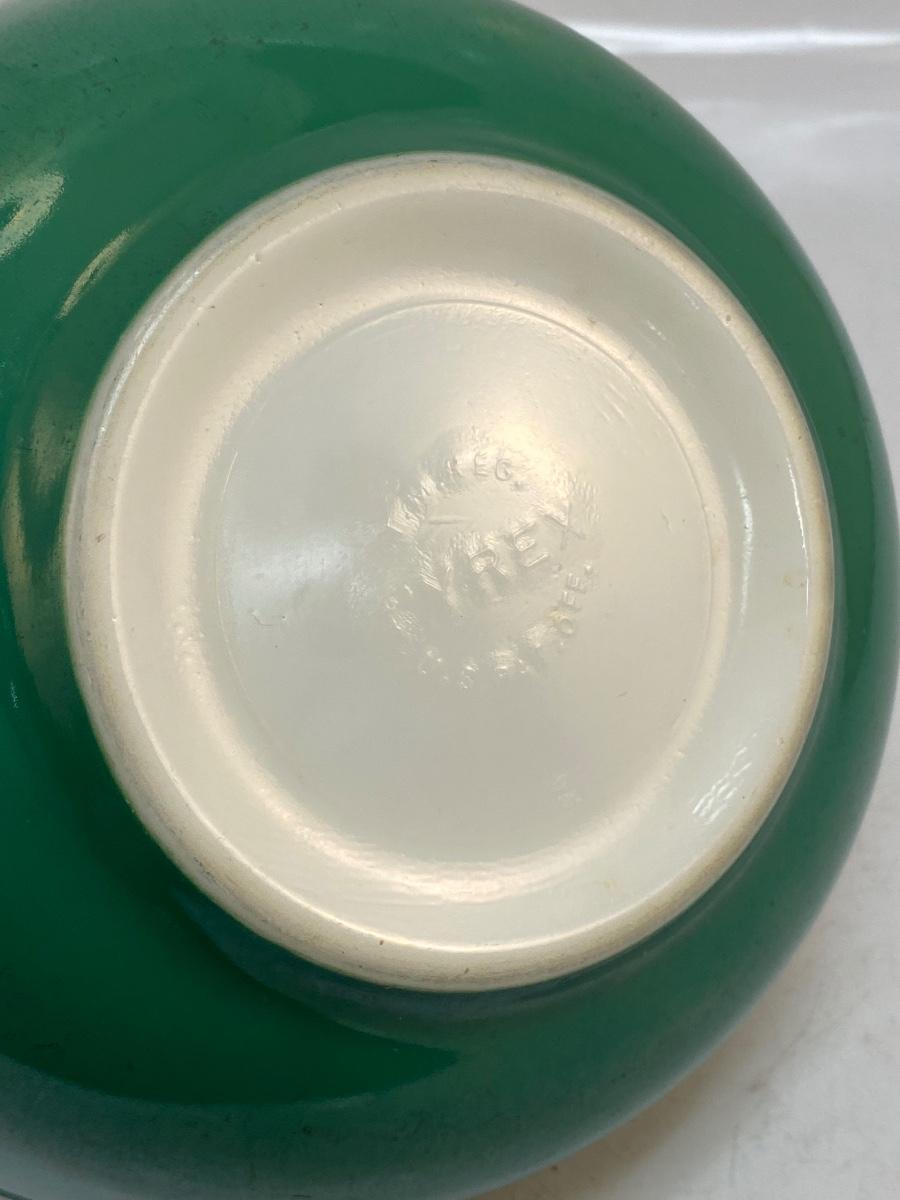 Vintage Primary Jade Green Pyrex Mixing Bowl 403. Color seems a little dark for primary green. Signs of use but in good vintage condition.