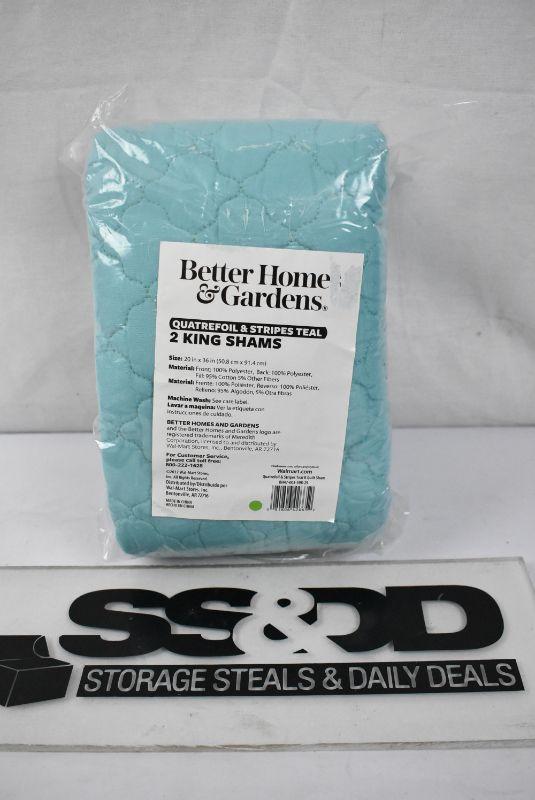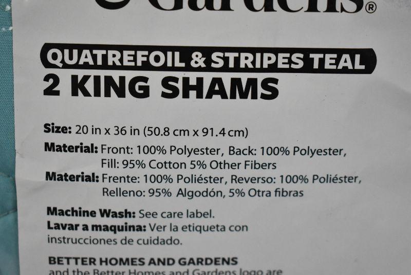 BH&G 2 King Shams, Quatrefoil & Stripes, Teal - New
