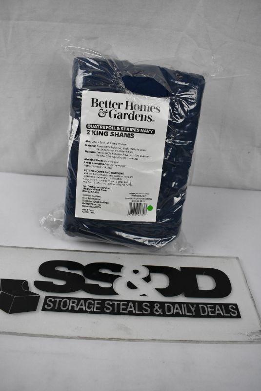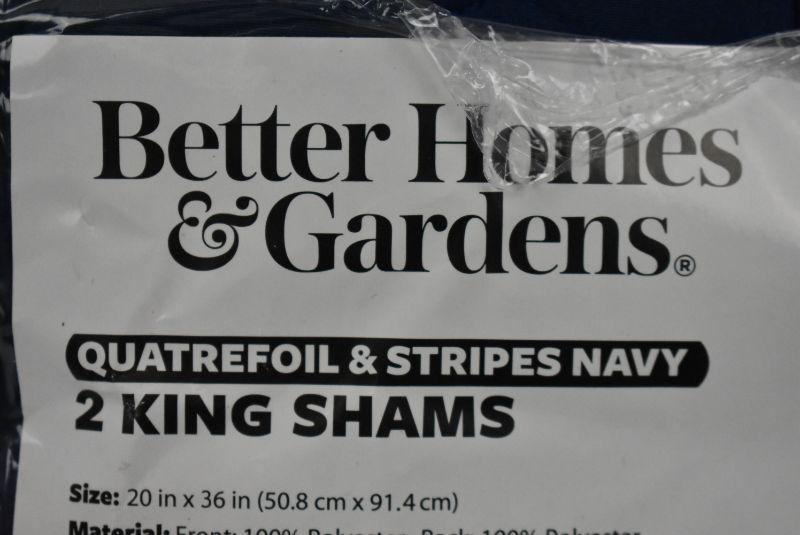 BH&G 2 King Shams, Quatrefoil & Stripes, Navy - New