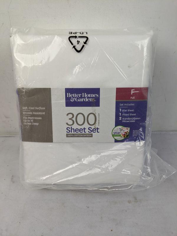 BH&G 300 TC Cotton Wrinkle Resistant Sheet Set, Full, White, 4-Piece Set - New