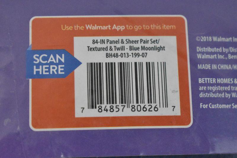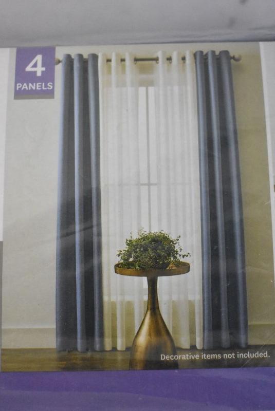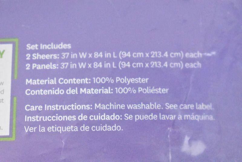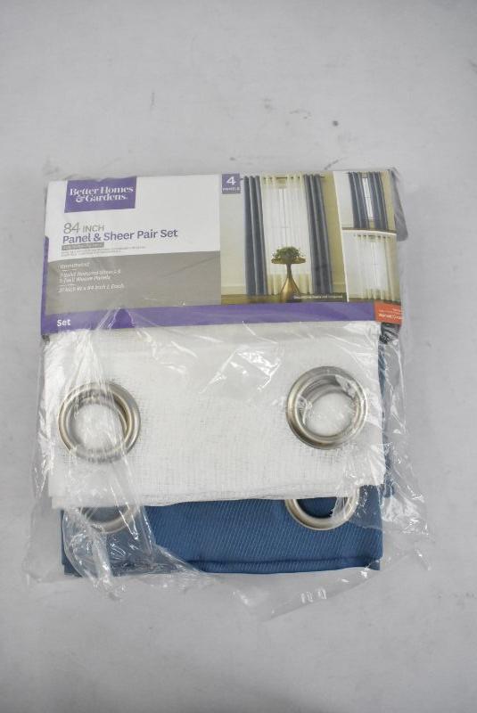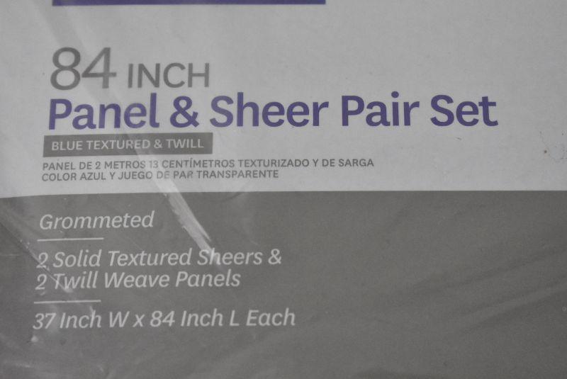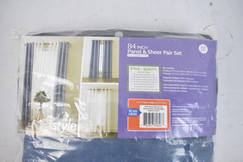 BH&G 4 piece panel set Window Curtains: 2 Blue Textured Twill Weave & 2 White Sheers 37" x 84" Each - New