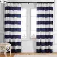 BH&G 52" x 84" White & Navy Curtain Panels, Qty 2 - New