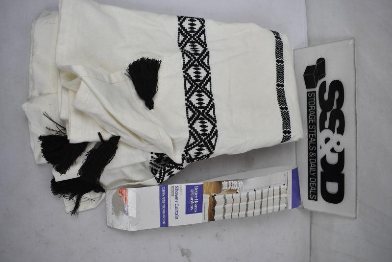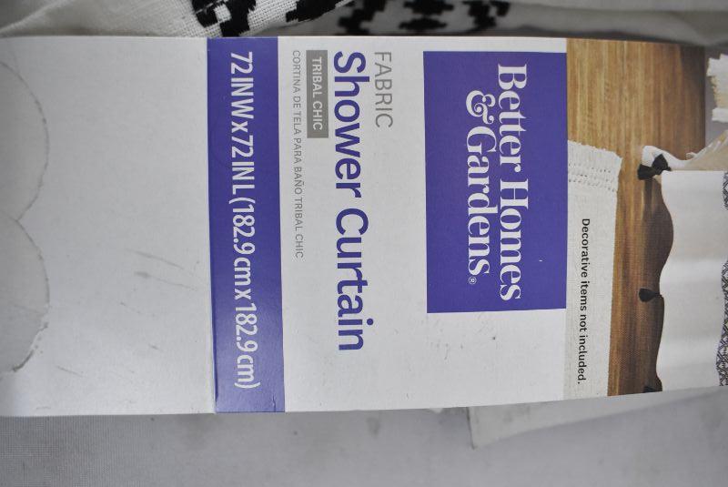 Better Homes & Gardens 72" x 72" Tribal Chic Shower Curtain, Cream & Black. Warehouse Dirt, $20 Retail