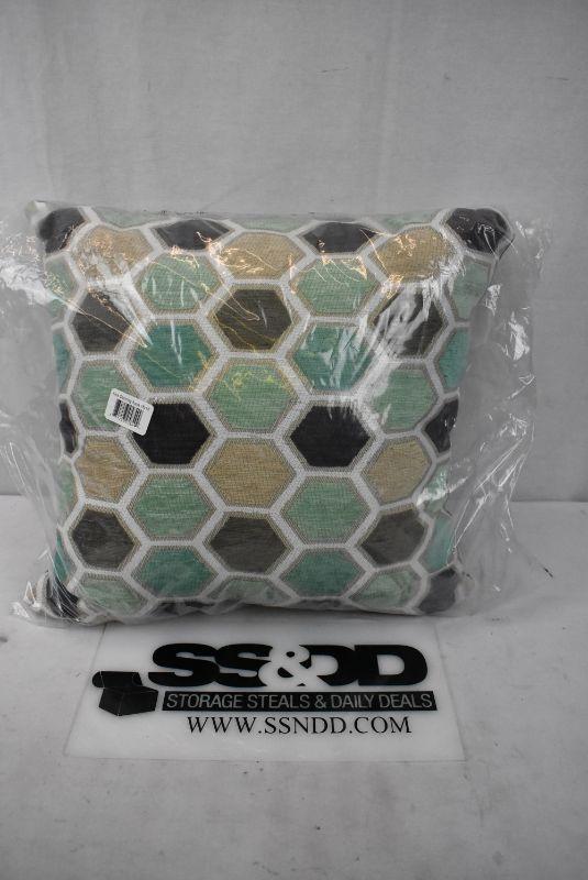 BH&G Aqua Hexagon Decorative Throw Pillow, 18" x 18", Aqua - New