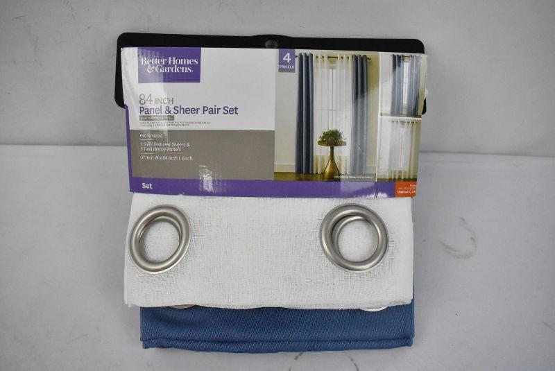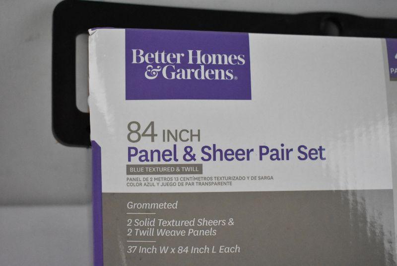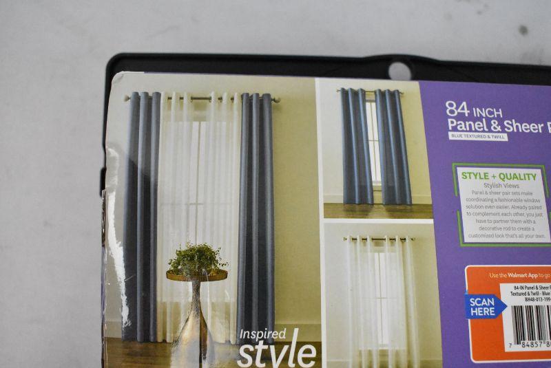 Better Homes and Gardens 84" Curtain Panels: 2 Blue Panels & 2 White Sheers Set: 37" x 84" Each - New