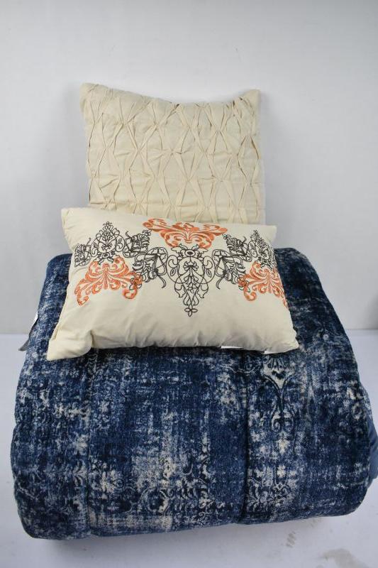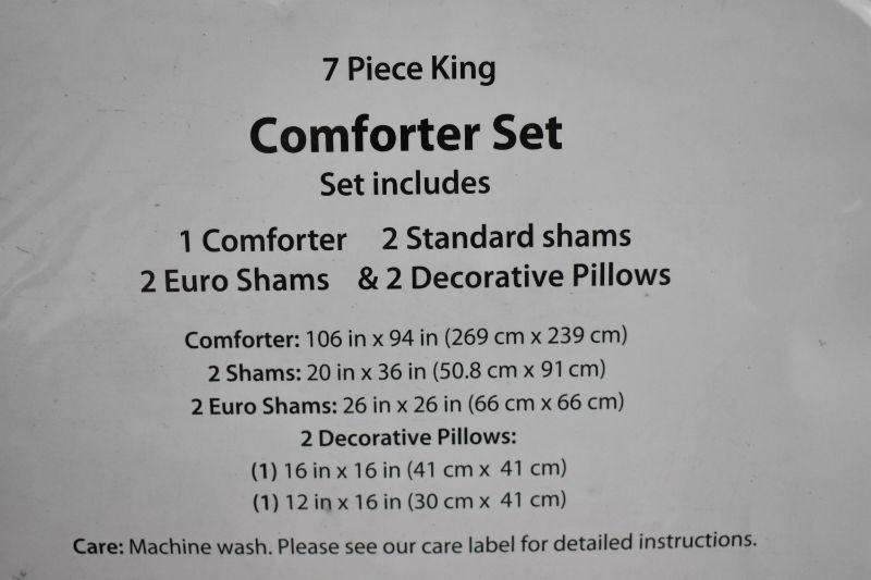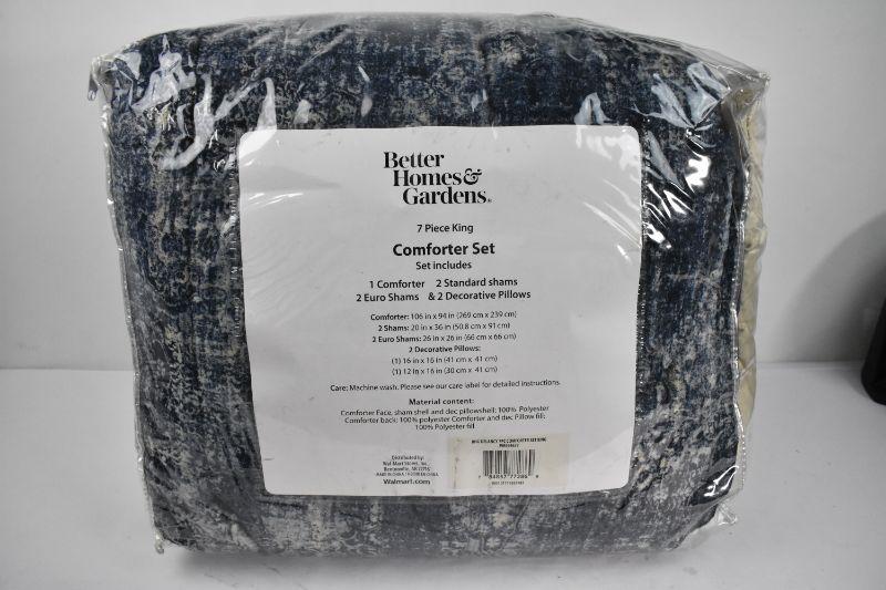 Better Homes and Gardens Delancey 7 Piece King Size Comforter Set, Navy/Tan: Comforter, 2 Shams, 2 Pillow Cases, 2 Decorative Pillows - New