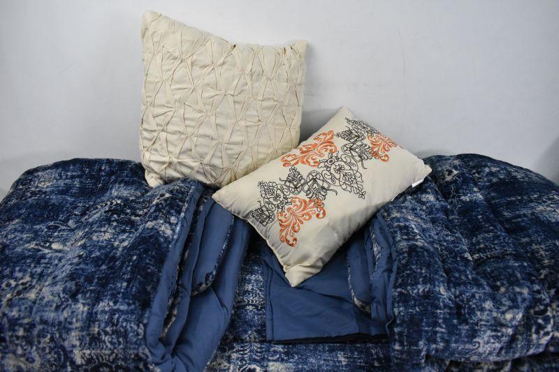 BH&G Delancey 7 Piece King Size Comforter Set, Navy/Tan - New