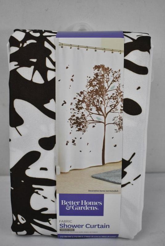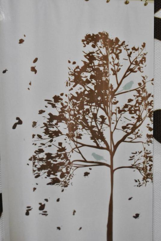 Better Homes and Gardens Fabric Shower Curtain "Farley Tree" White/Brown/Aqua - New