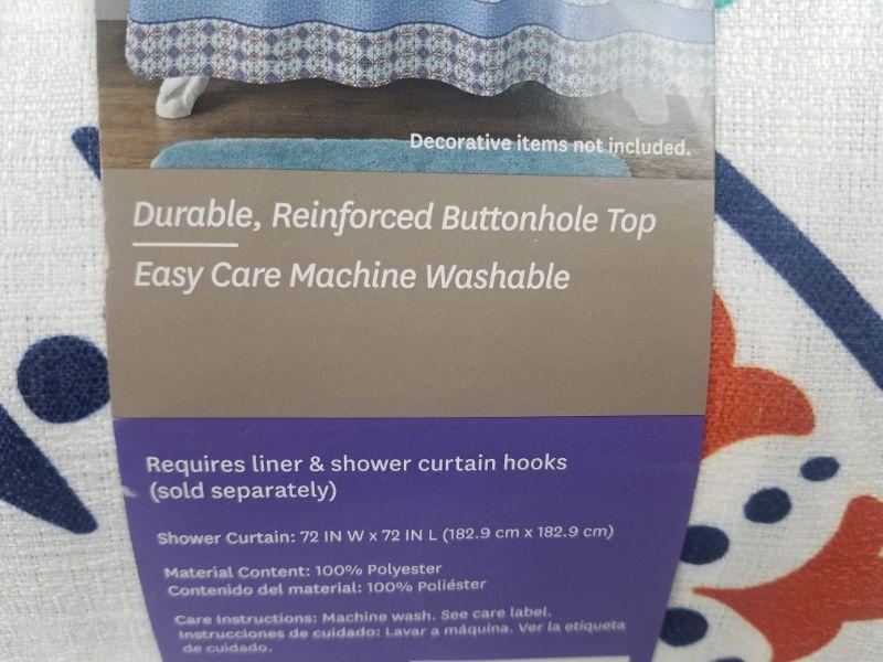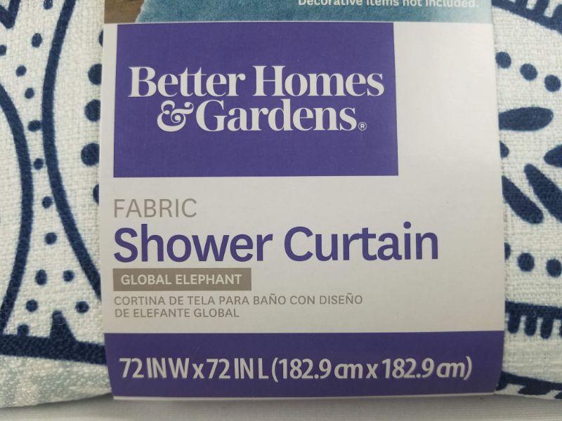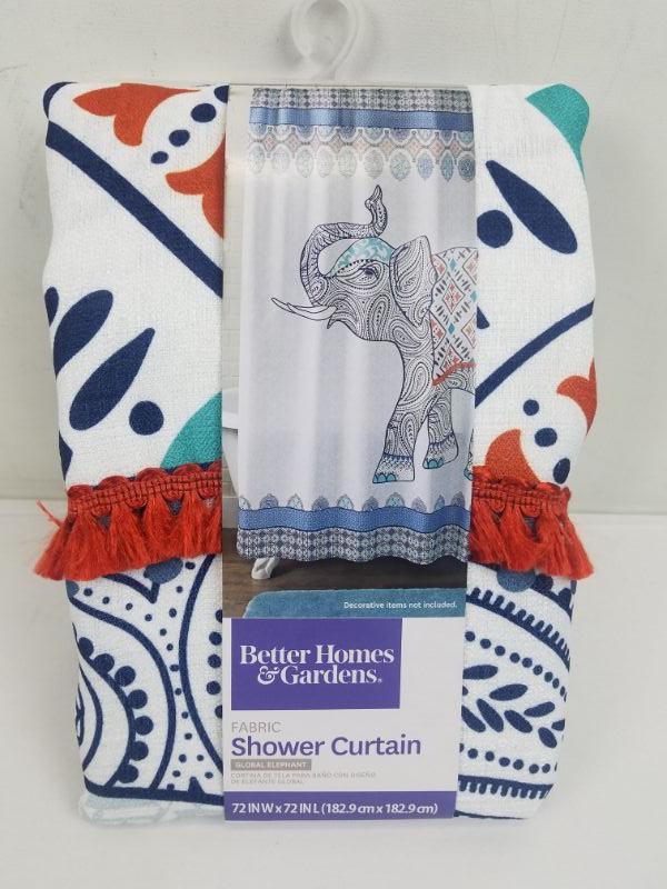BH&G Fabric Shower Curtain "Global Elephant" Design 72" x 72" - New
