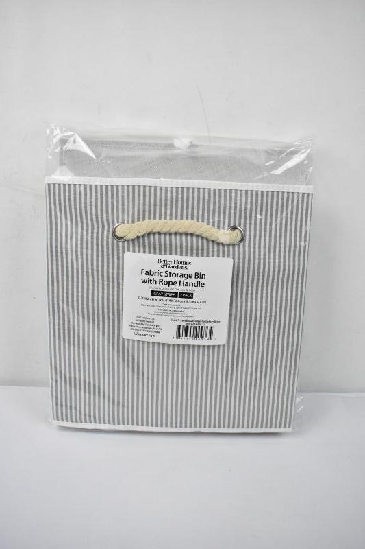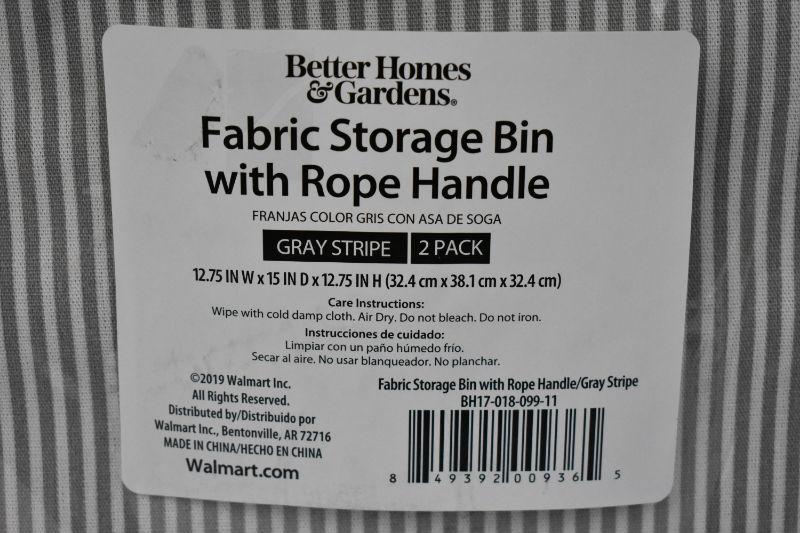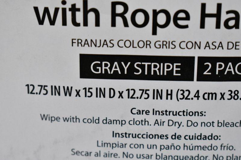 Better Homes and Gardens Fabric Storage Bins with Rope Handles, Gray Stripe 2 Pack - New
