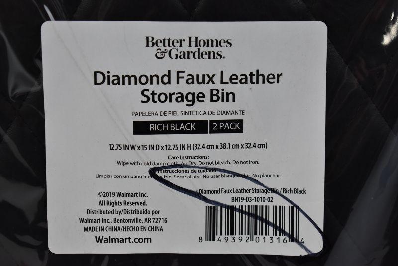 BH&G Faux Leather Storage Bin, 2-Pack, Black - New, Retails $19