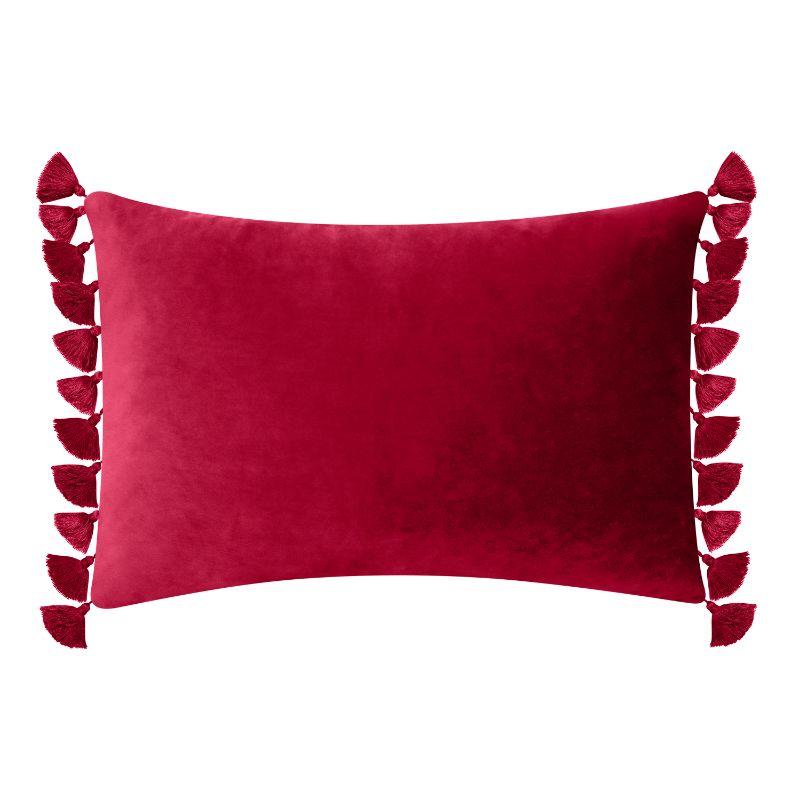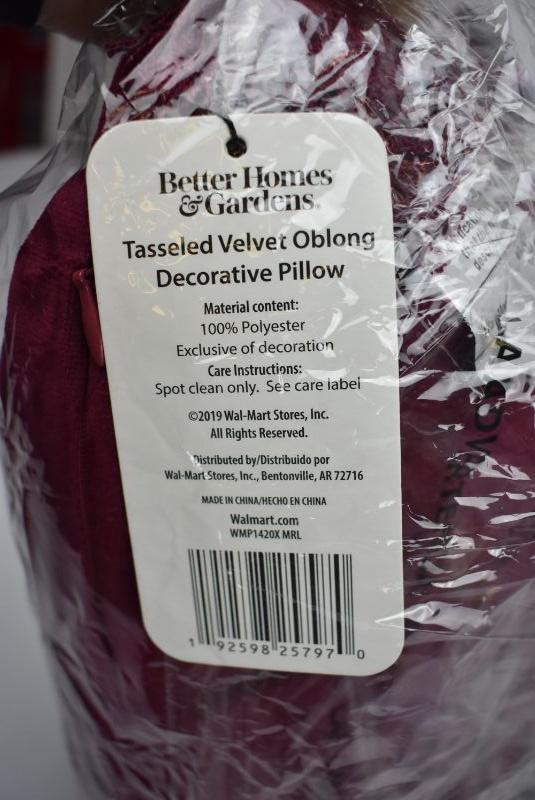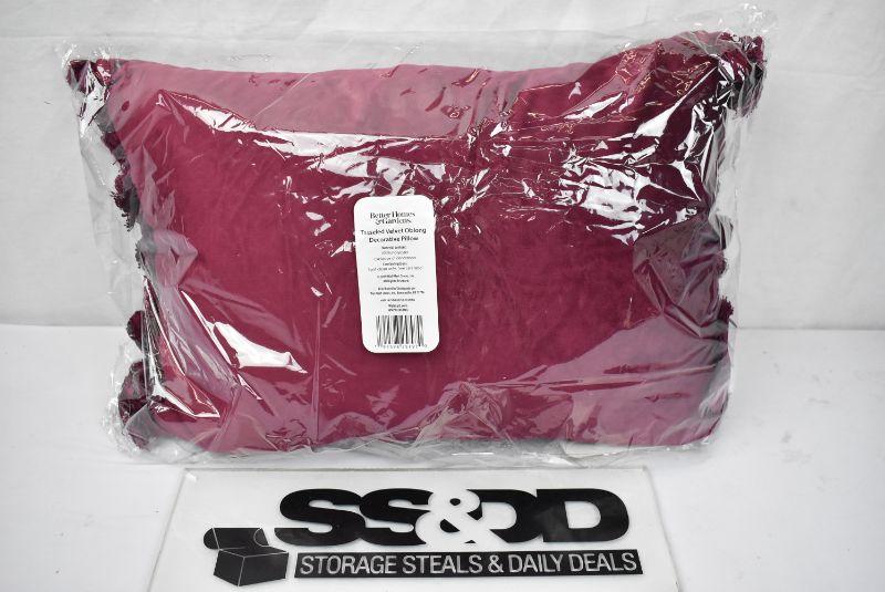 Better Homes & Gardens Feather Filled Tasseled Velvet Oblong Decorative Throw Pillow, 14" x 20", Merlot - New