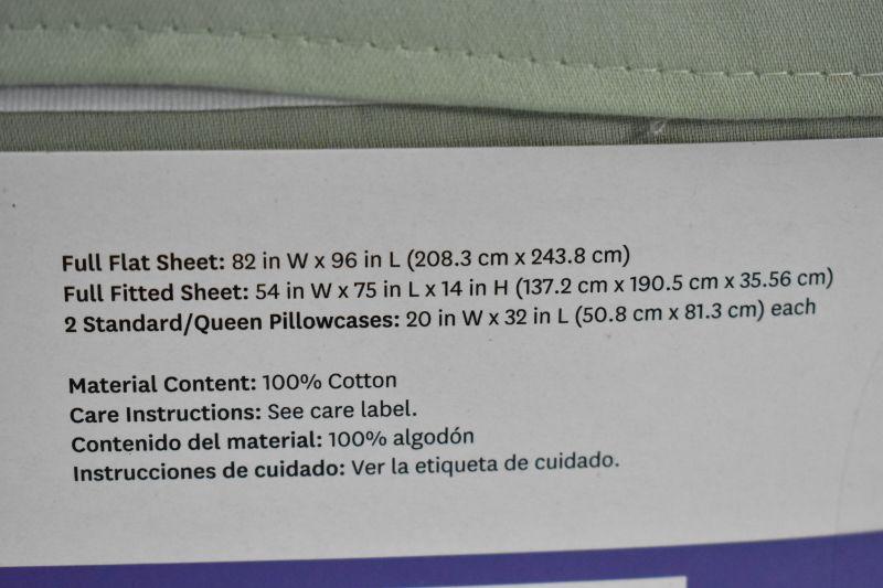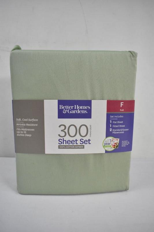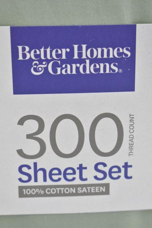 Better Homes and Gardens Full Size Sheets Set 300 Thread Count, Green "Mint Garden" - New