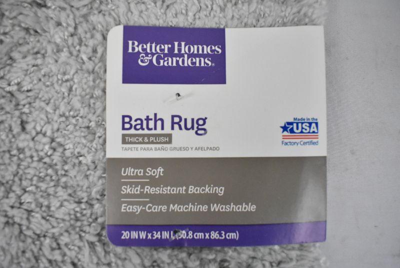 BH&G Gray Bath Rug 20" x 34" Thick & Plush Collection "Soft Silver" - New