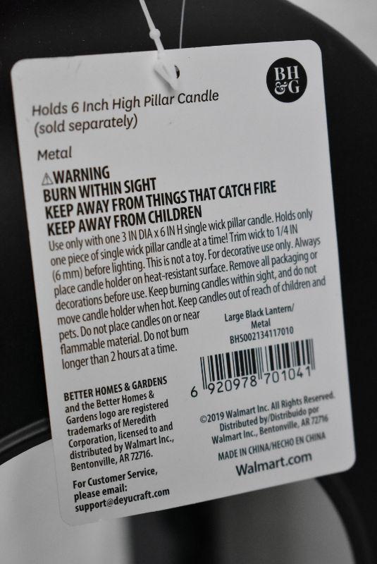 BH&G Large Black Metal Candle Holder Lantern. SEE DESCRIPTION