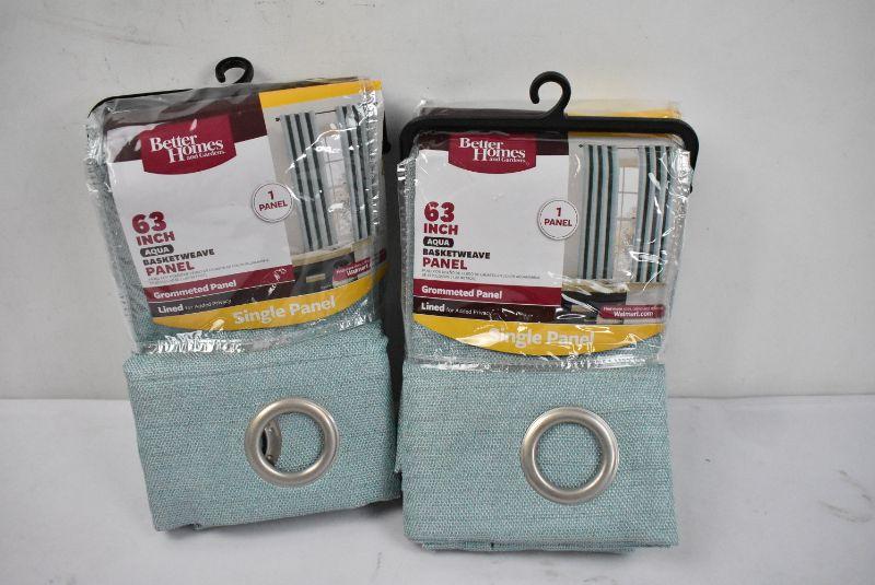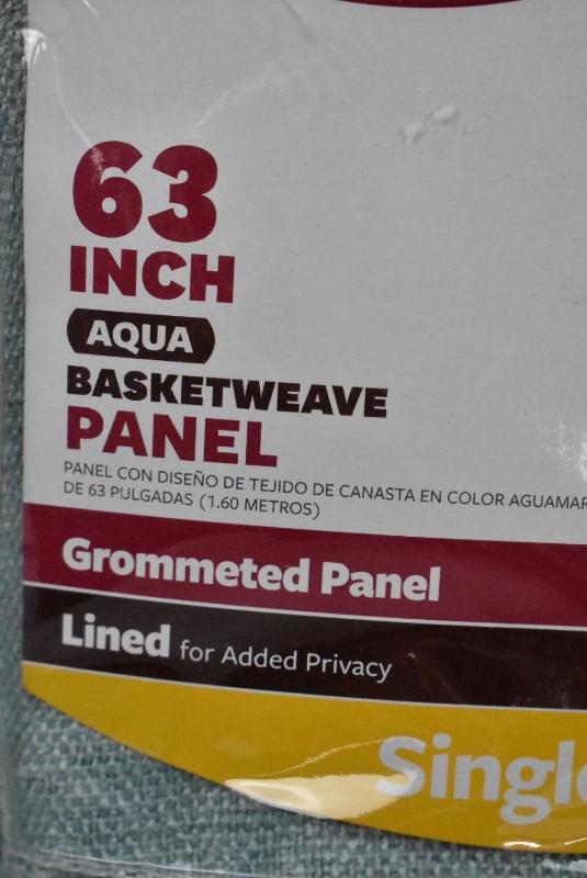 BH&G Lined Curtain Panel Pair, 50" x 63" each. Grommeted, Aqua Basketweave - New