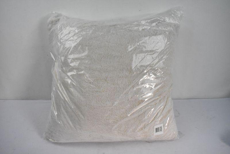 BH&G Luxe Faux Fur Decorative Throw Pillow, Super Soft, Cream, 24" x 24" - New
