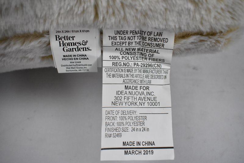 BH&G Luxe Faux Fur Super Soft Throw Pillow, Cream Colored, 24" x 24" - New