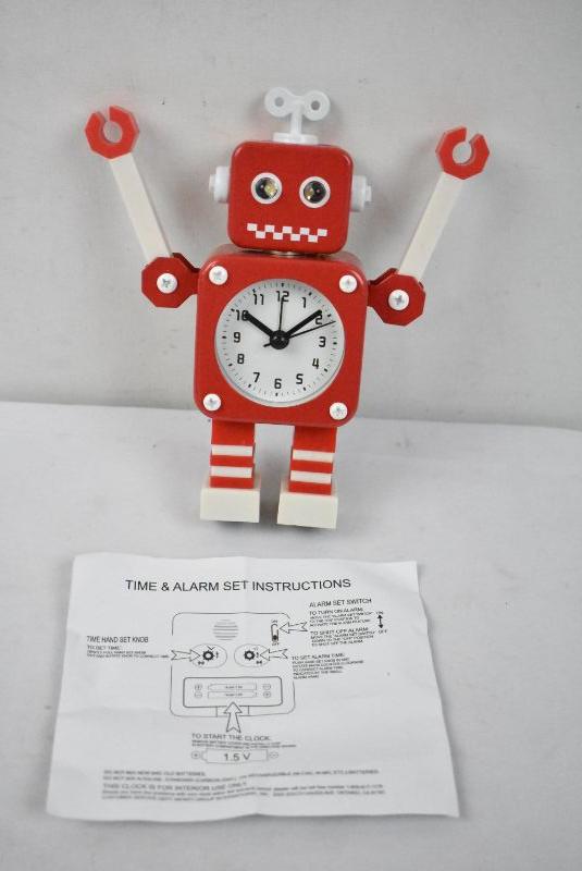BH&G Metal Robot Alarm Clock, Red, Moveable Arms & Head, No packaging - New