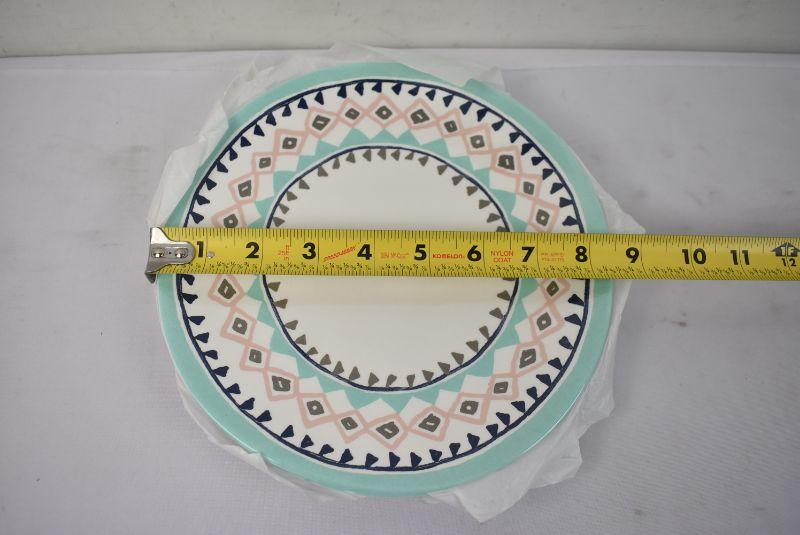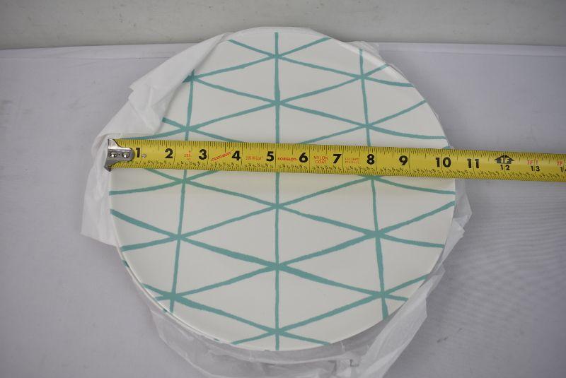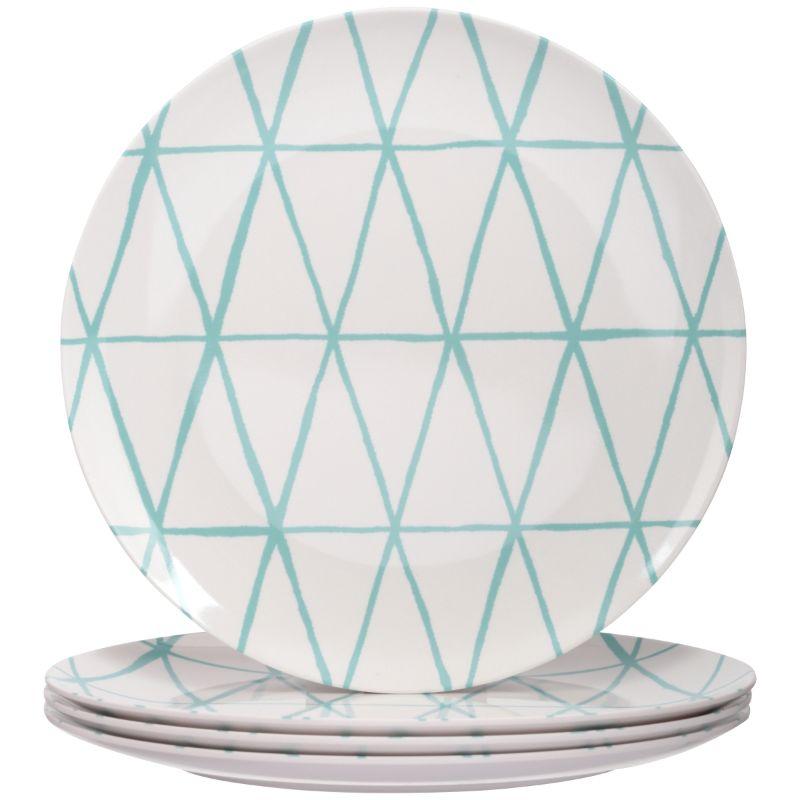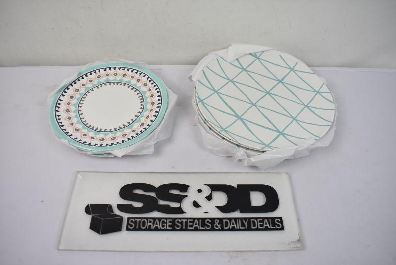 Set of 4 Better Homes & Gardens Set of Outdoor Plates: Melamine Multi Geo Design Salad Plates AND Set of 4 Melamine Mint Triangle Lines Dinner Plates
