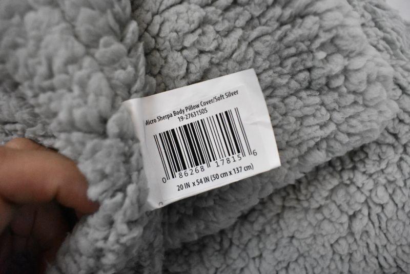 BH&G Plush Micro Sherpa Body Pillow Cover, Gray. No packaging - New