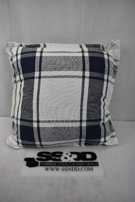 BH&G Reversible Plaid Decorative Pillow, 20" x 20", Navy/White - No tags - New