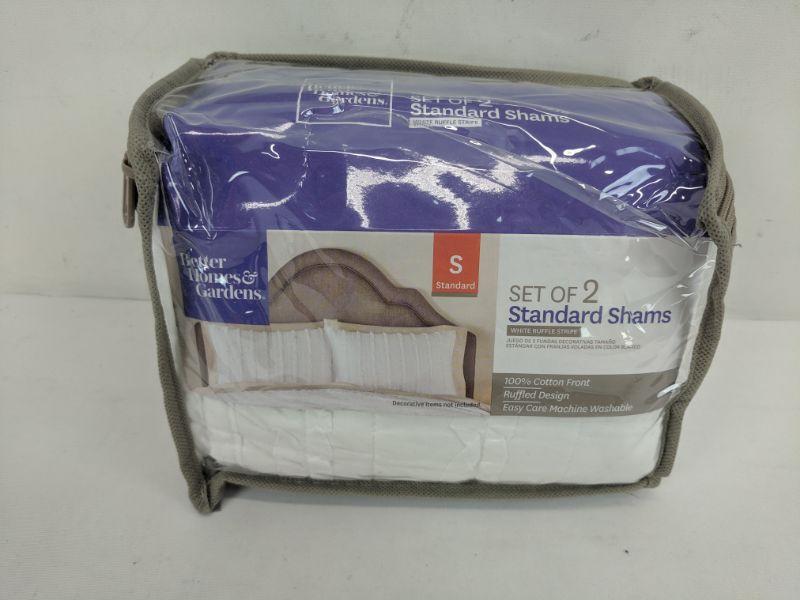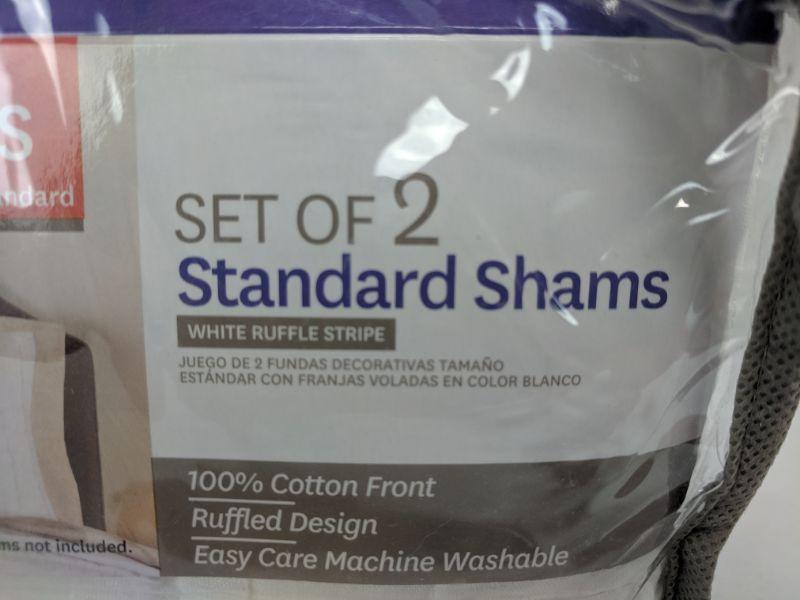 BH&G Set of 2 Standard Size Shams "White Ruffle Stripe" - New