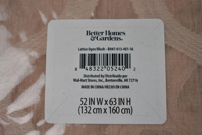 BH&G Sheer Lattice Ogee Window Curtain Panel Set of 2, Blush, 52" x 63" Each - New