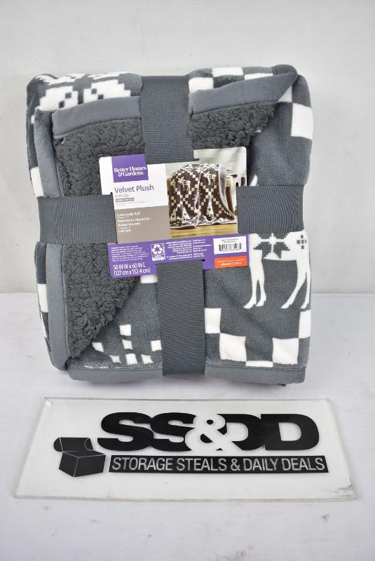 BH&G Sherpa Throw Blanket, 50" x 60", Grey Fairisle, $15 Retail - New