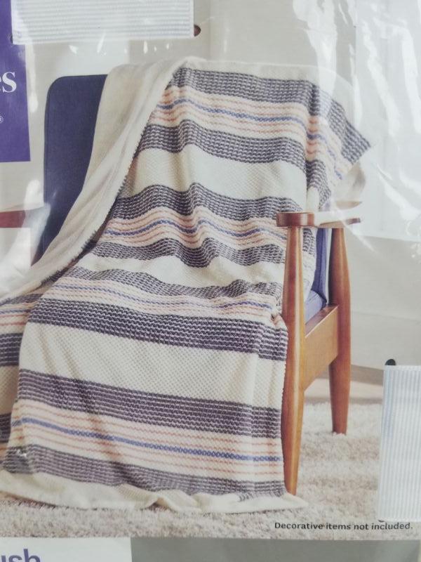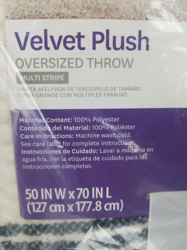 BH&G Velvet Plush Oversized Throw Multi Hickory Stripe 50x70" - New
