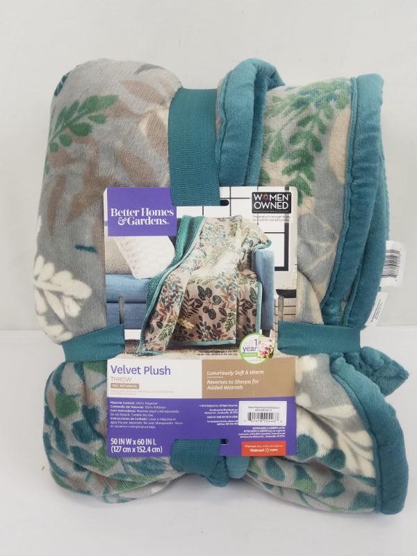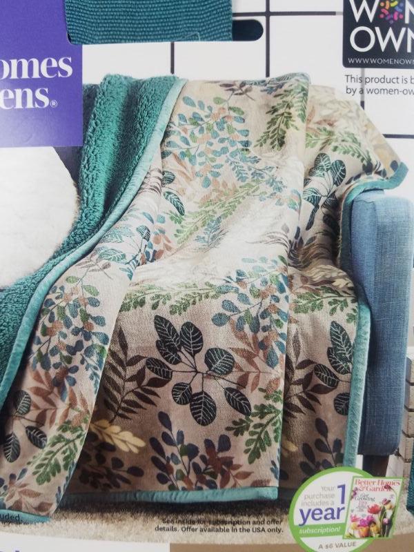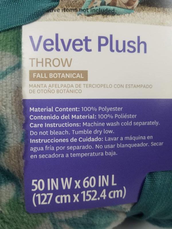 BH&G Velvet Plush Throw "Fall Botanical" 50" x 60" Teal Floral - New