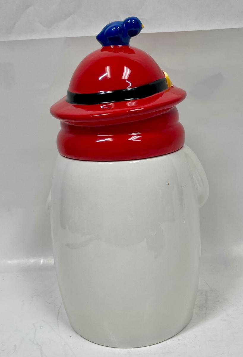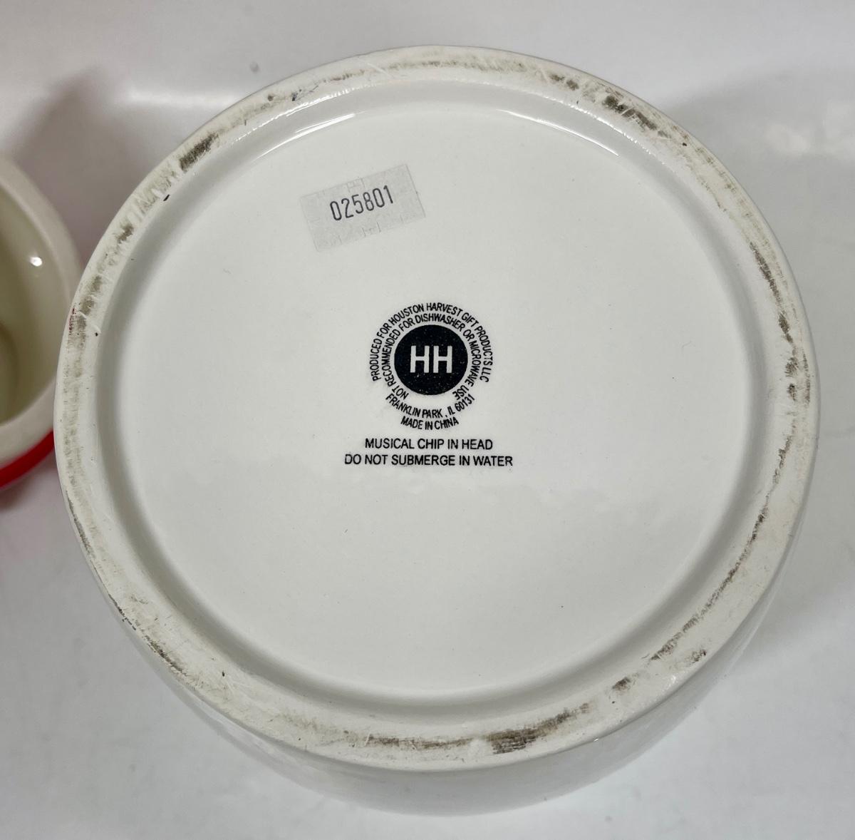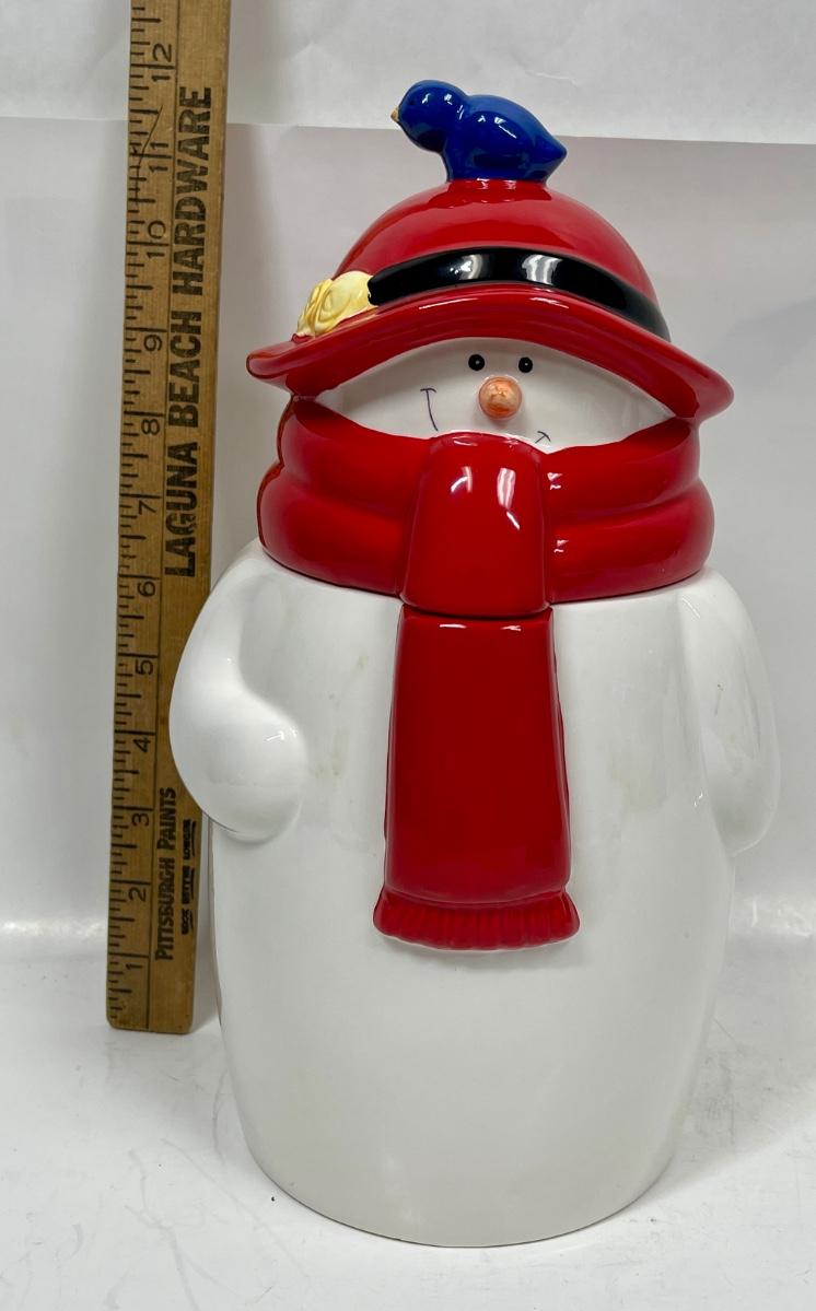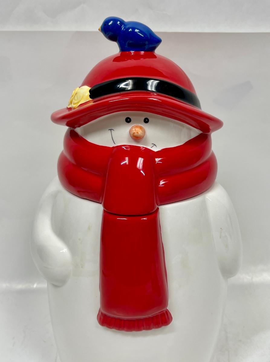 Houston Harvest Gifts Porcelain Snowman Cookie Jar Plays Music when Top Removed