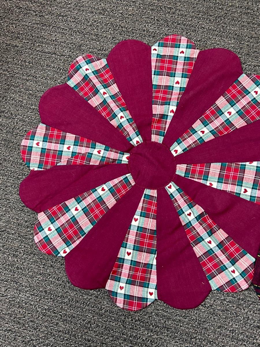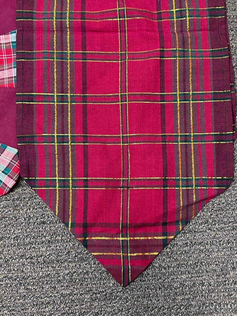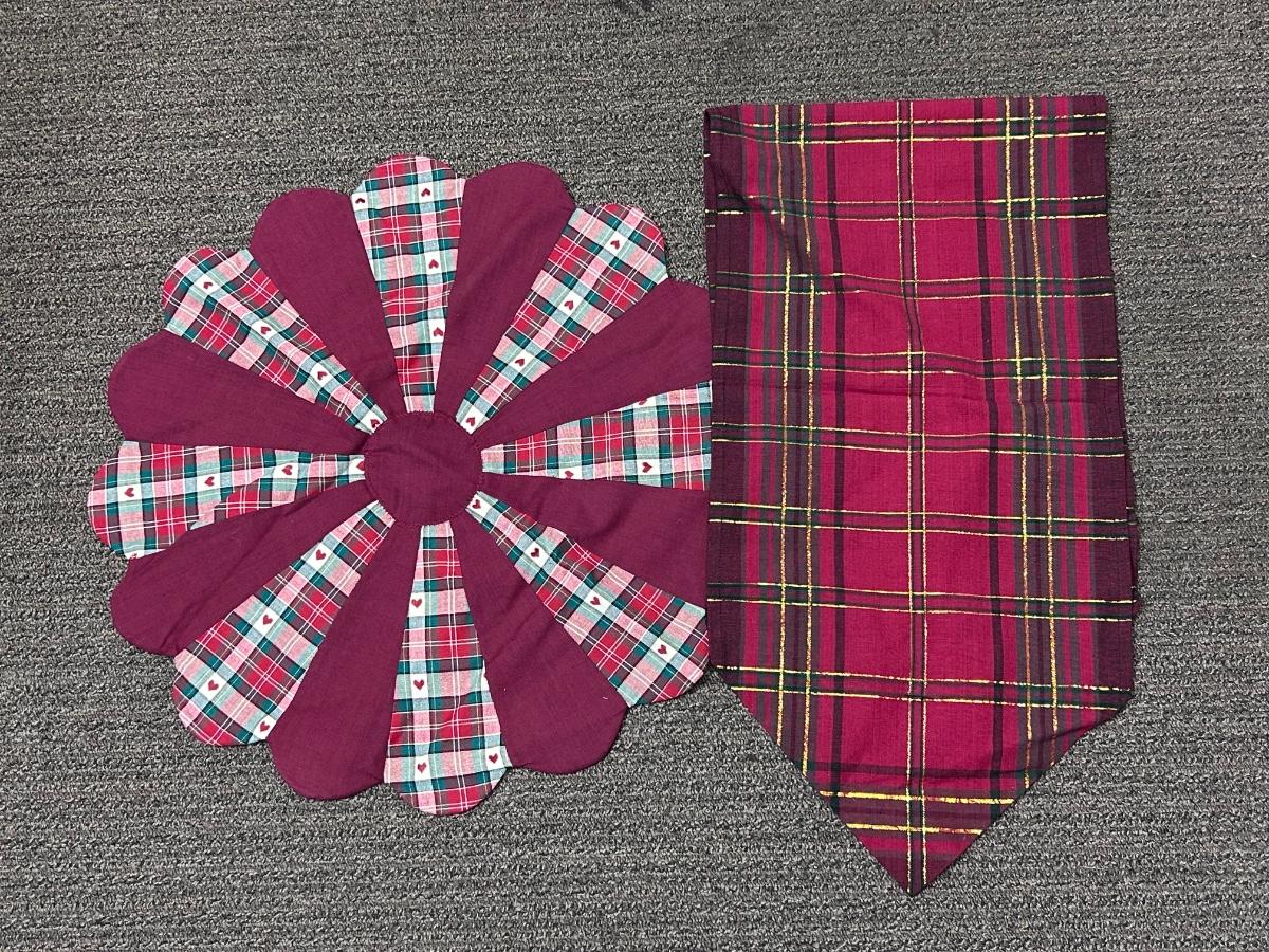 Pair of Christmas Holiday Table Linen Runner Doily Dark Red Plaid. In good condition. Runner is about 4' length.