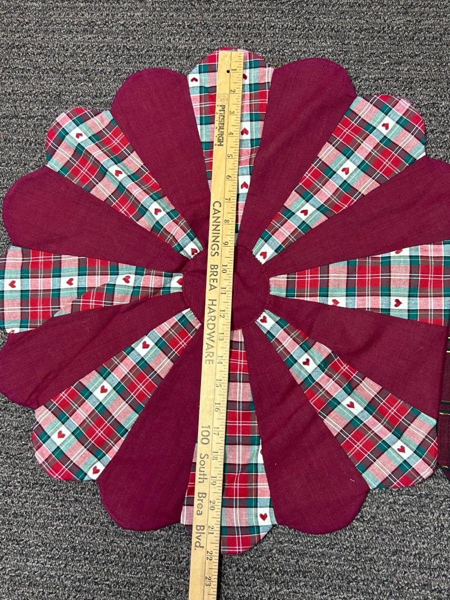 Pair of Christmas Holiday Table Linen Runner Doily Dark Red Plaid