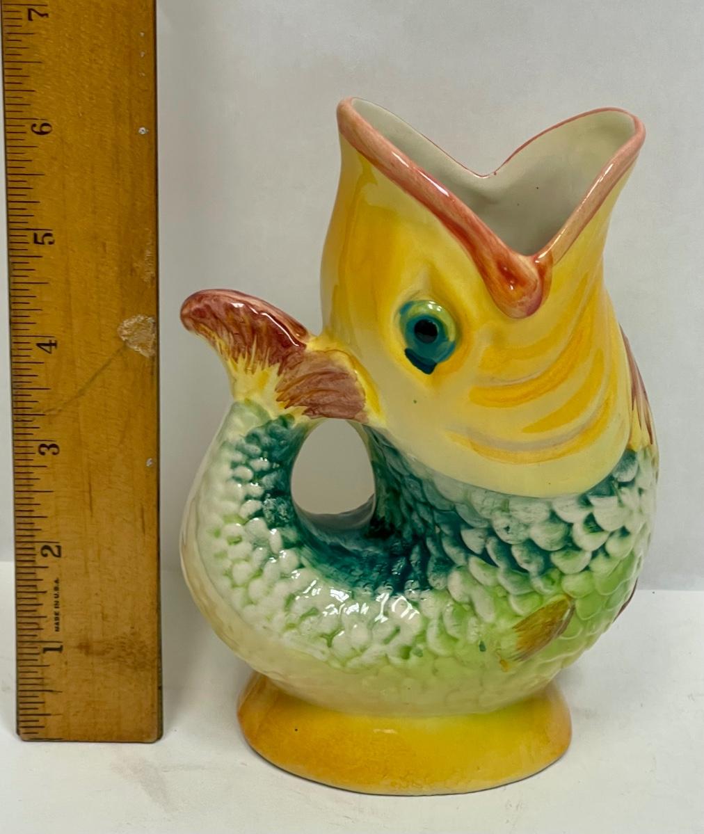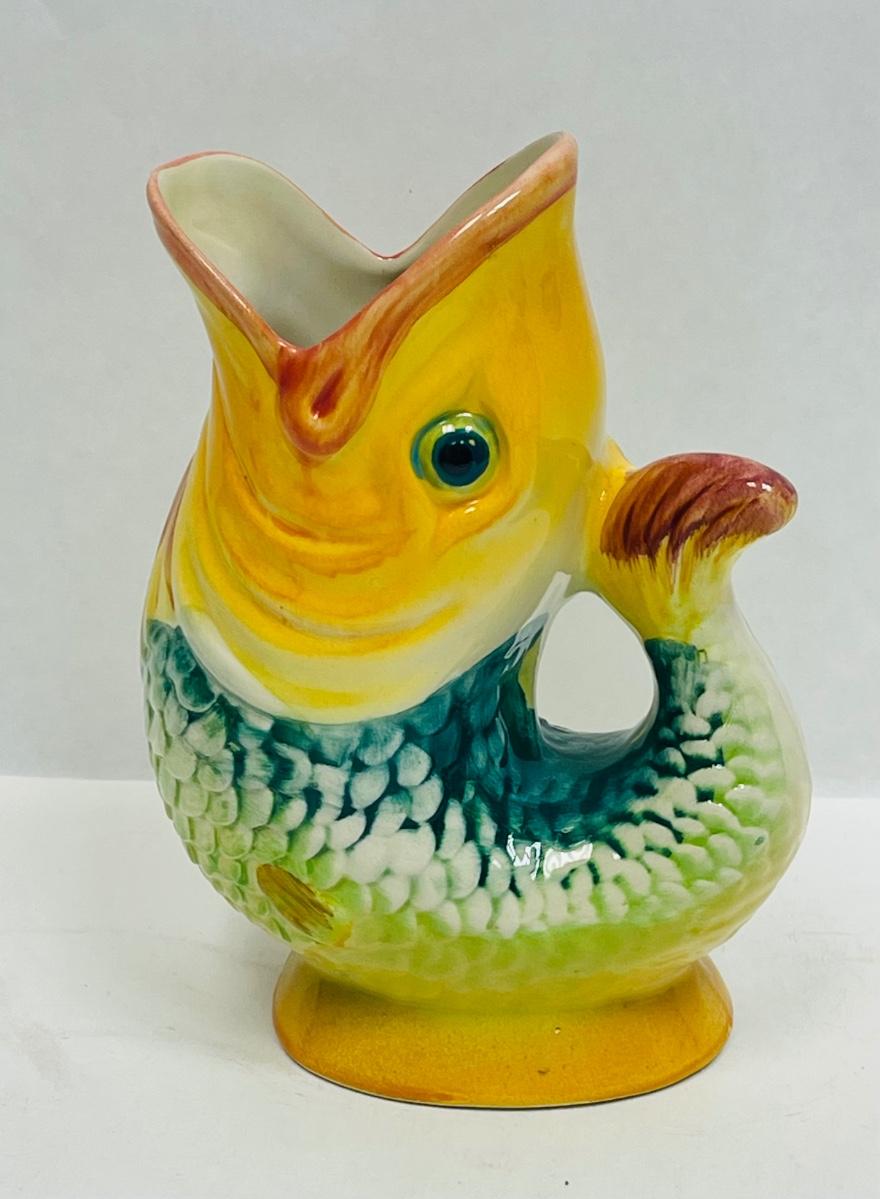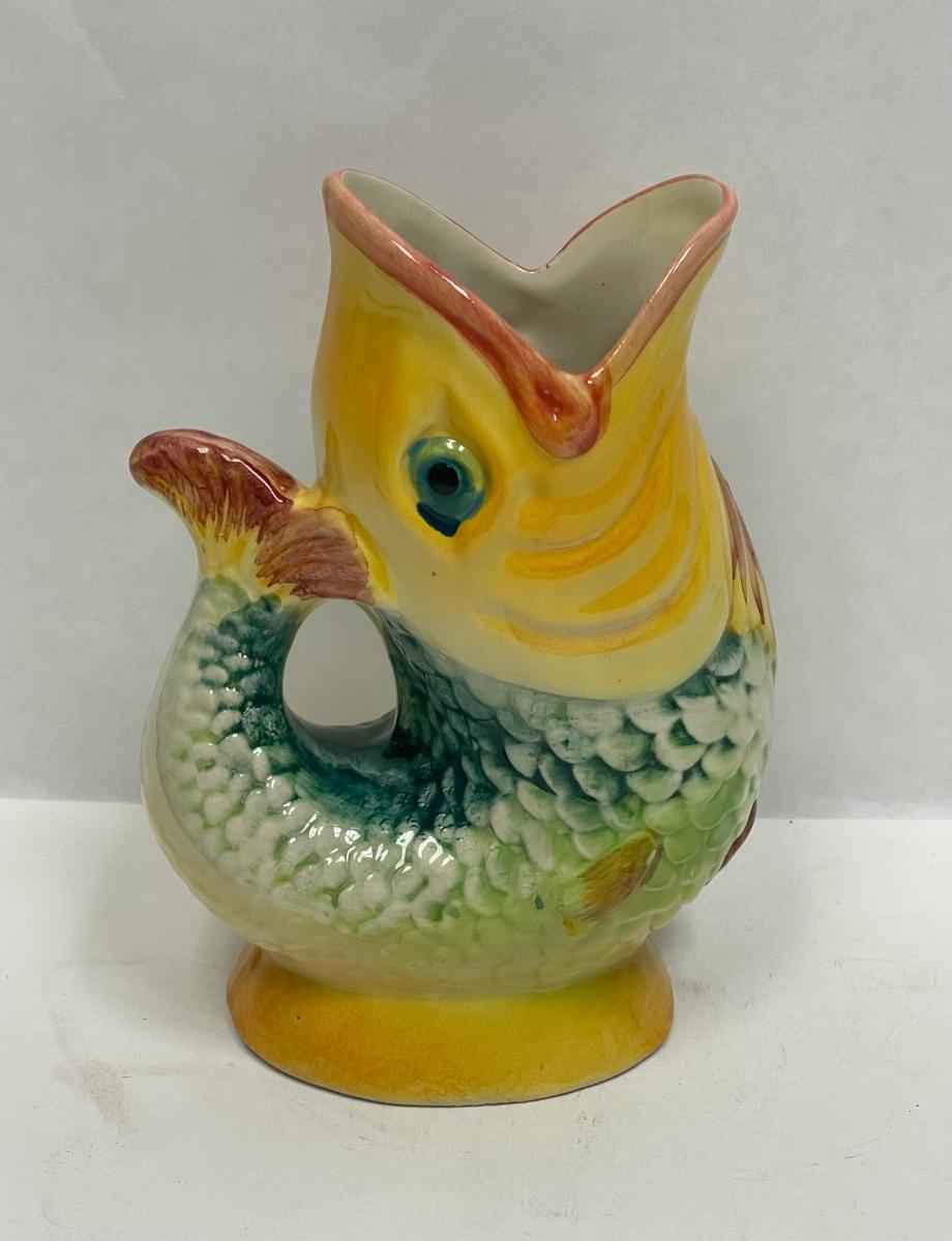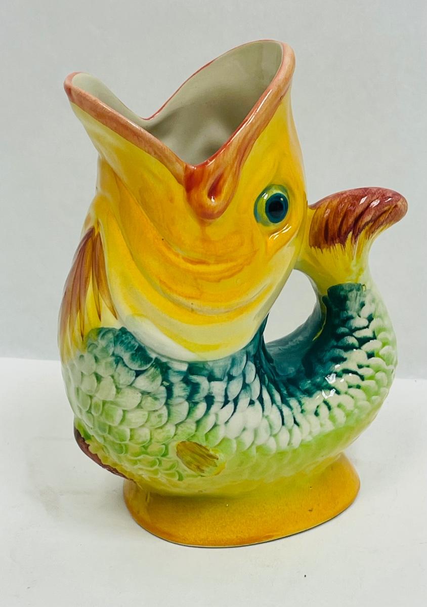 Colorful Majolica Ceramic Pottery Fish Vase from Portugal
