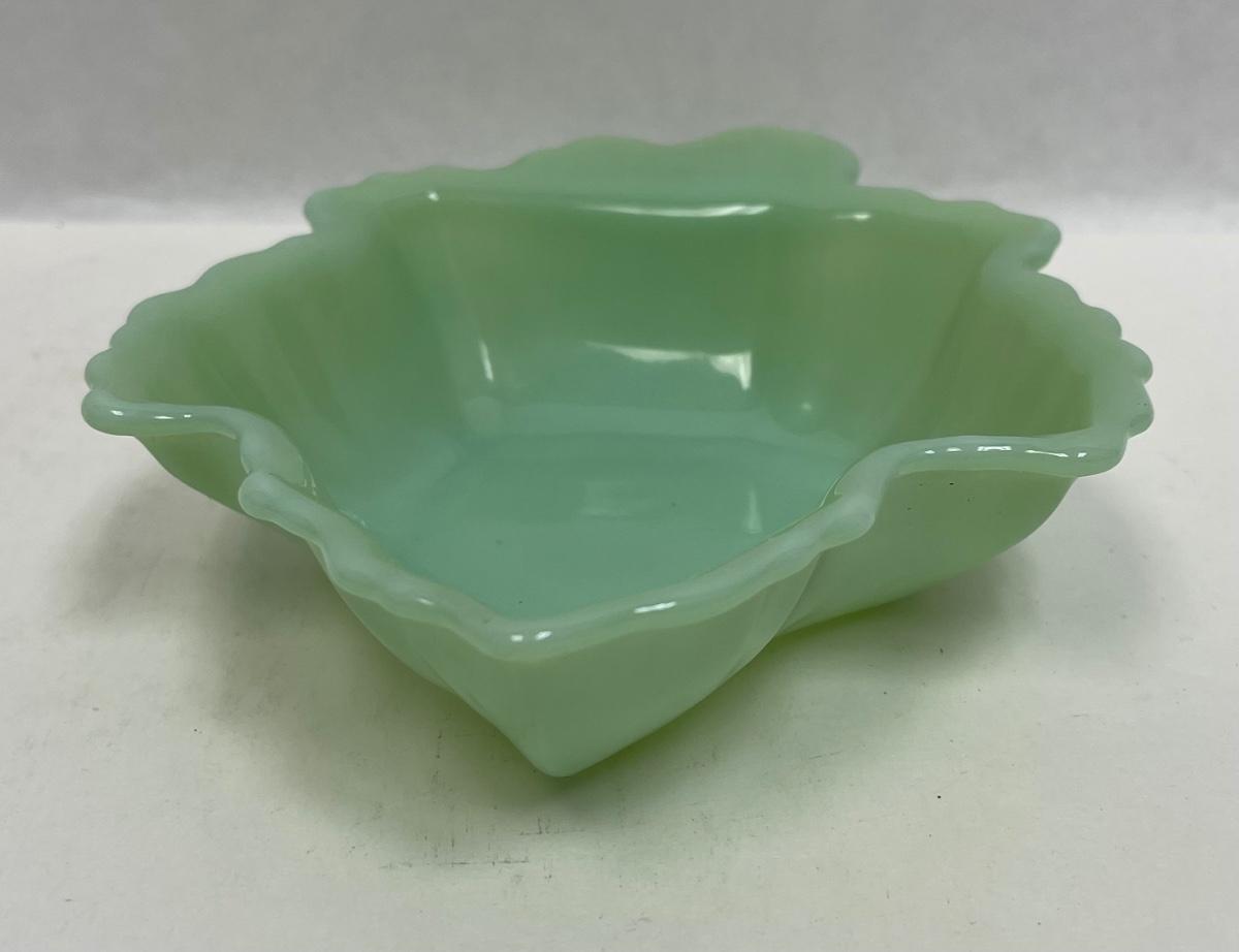 Vintage Fire King Jadeite Green Maple Leaf shaped bowl nuts or candies