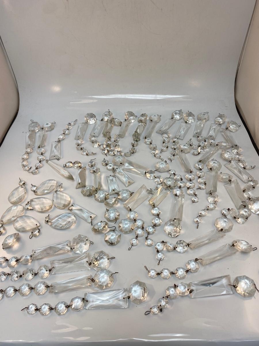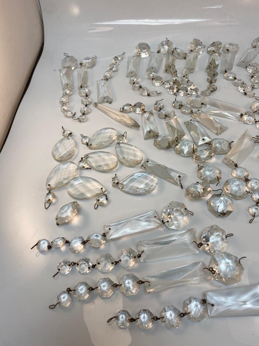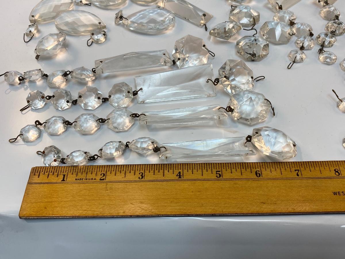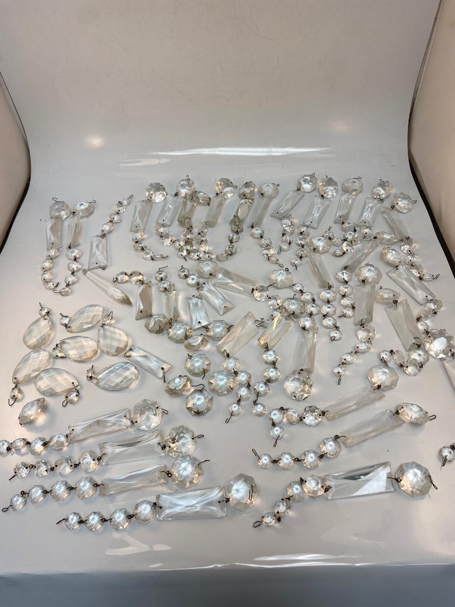 Huge Lot of Vintage Prism Crystals for Lamps Chandeliers Crafting Decor Various Shapes and Sizes. Clear prism crystals. Alot are connected in strands that measure about 7". Can be separated as desired.