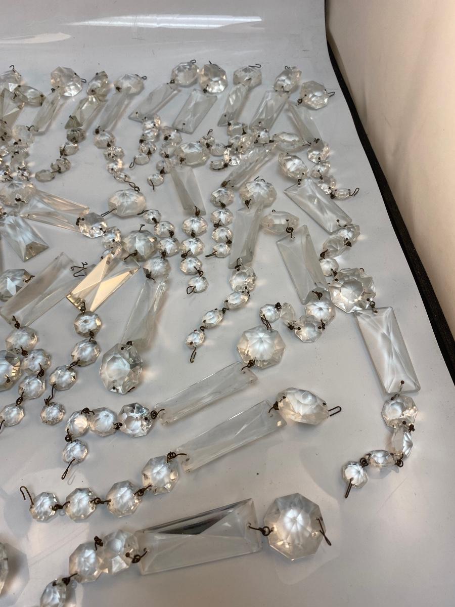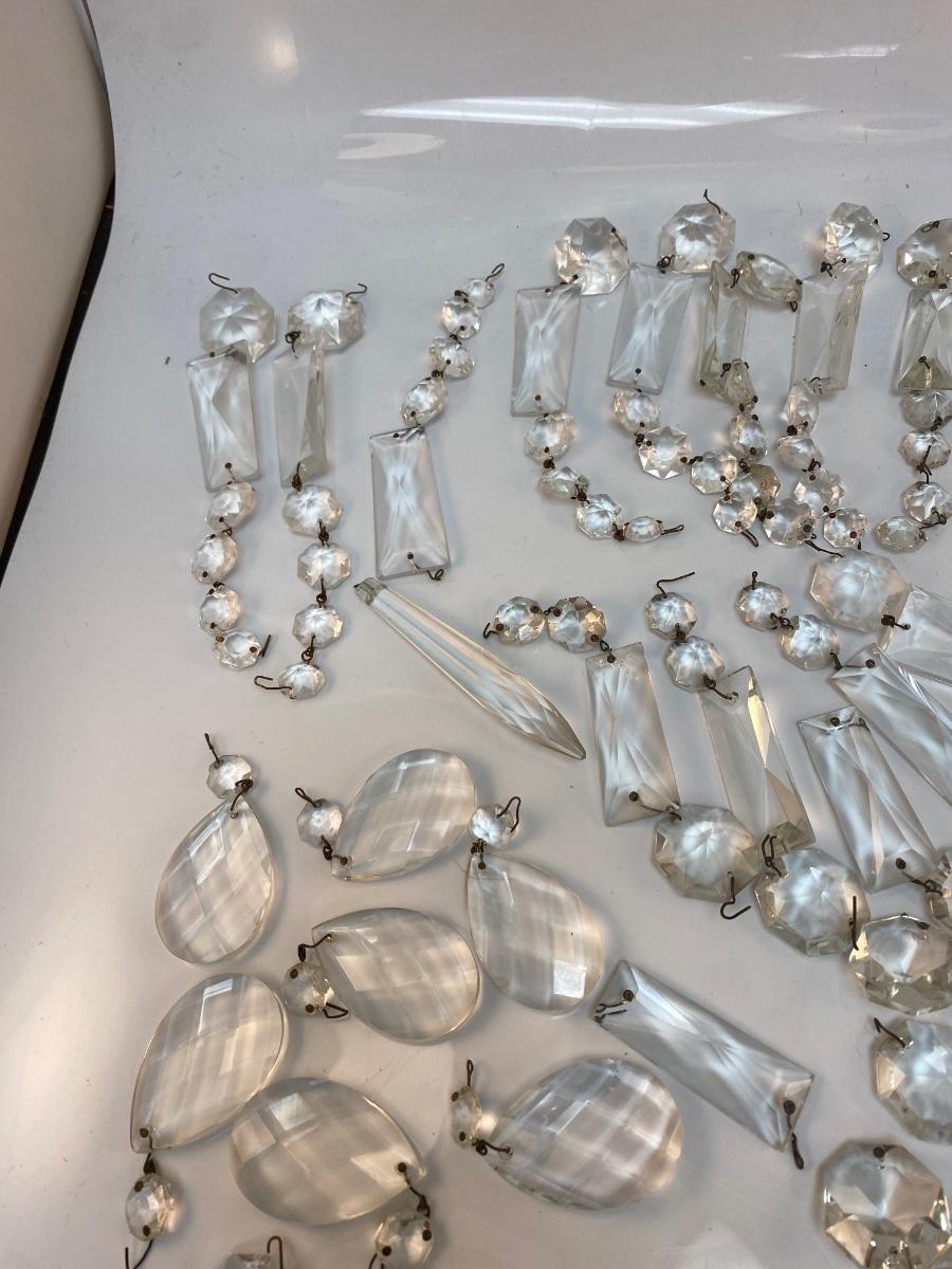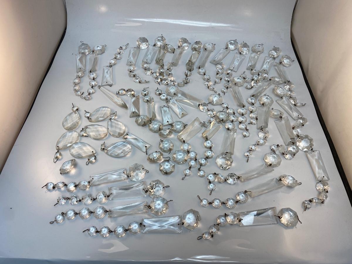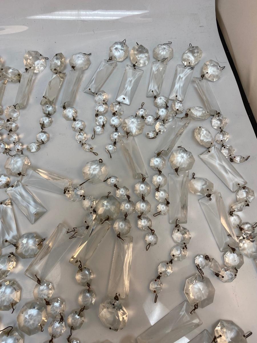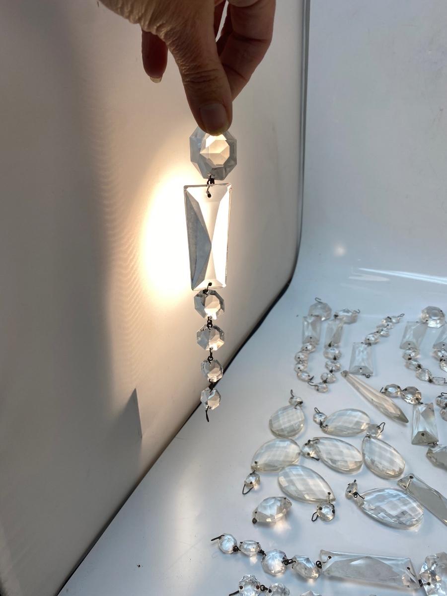 Huge Lot of Vintage Prism Crystals for Lamps Chandeliers Crafting Decor Various Shapes and Sizes. Clear prism crystals. Alot are connected in strands that measure about 7". Can be separated as desired.