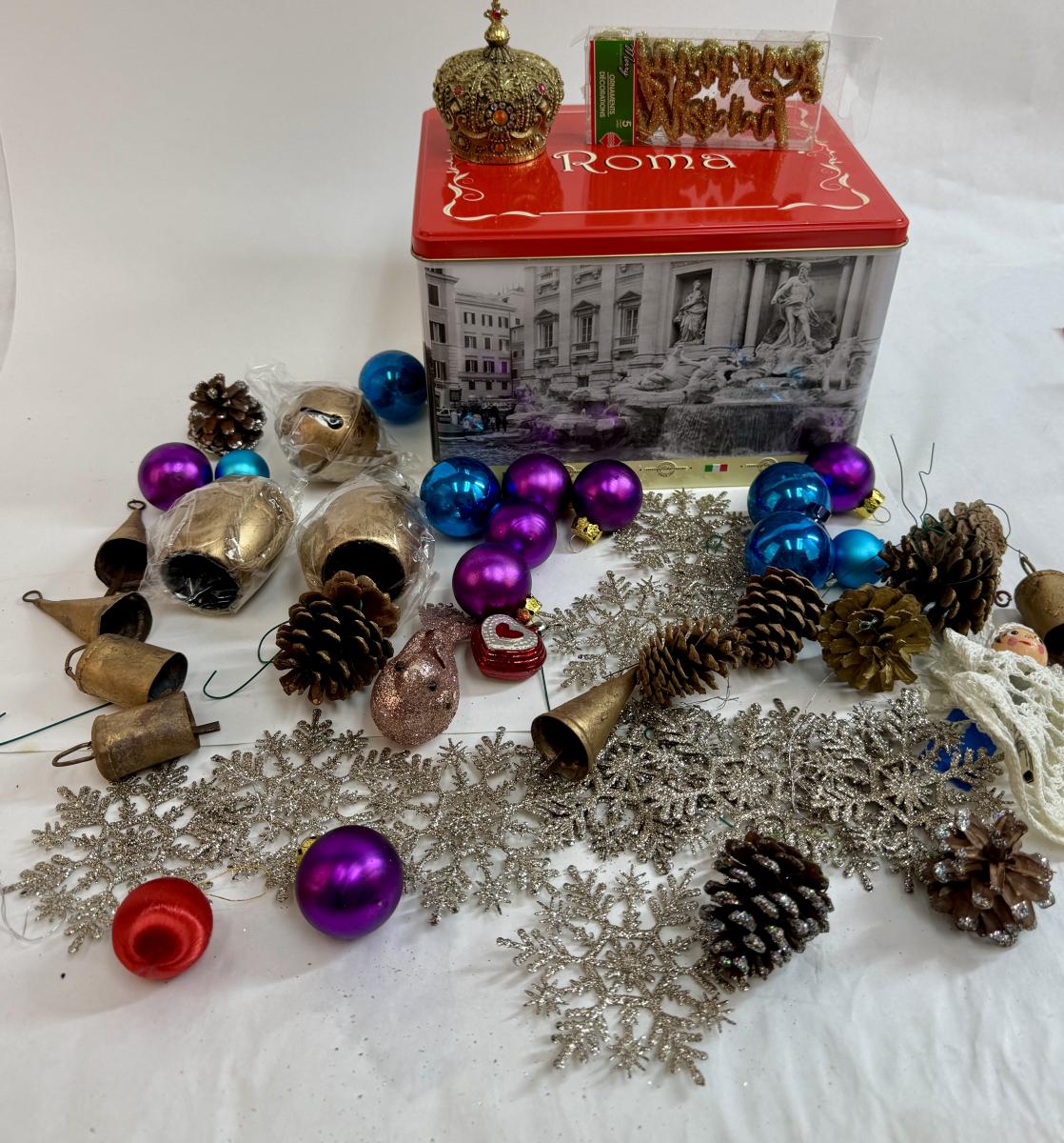 Tin with Rome artwork and sculpture images, ornaments, and more. See photos for what's included.