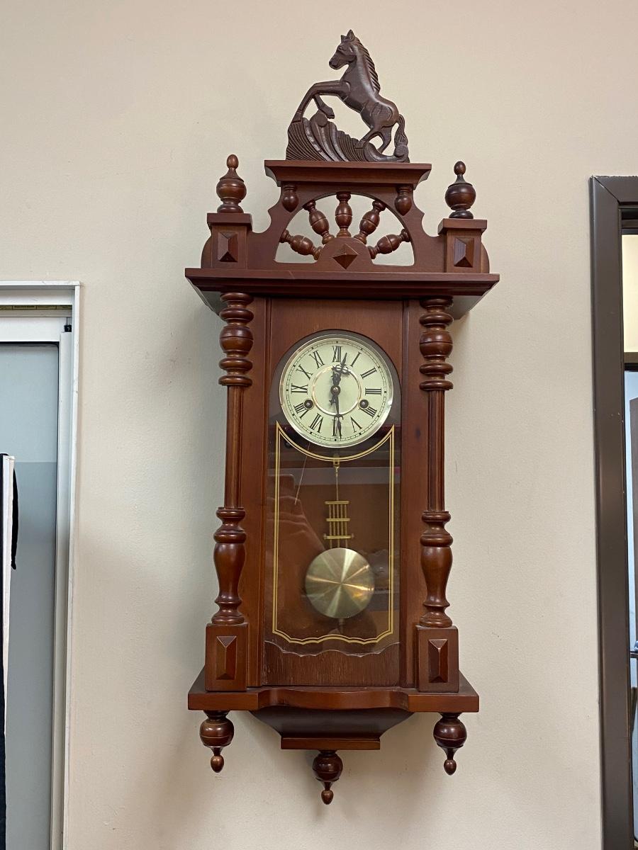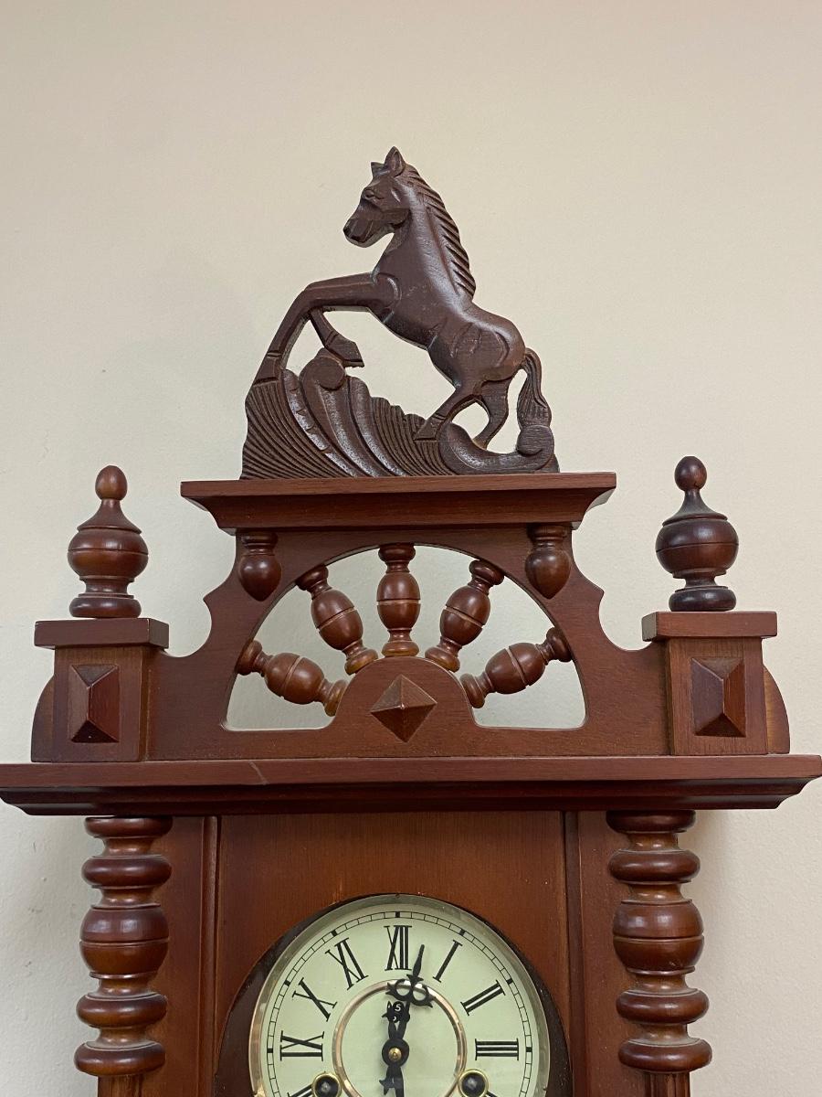 Vintage R&A Solid Wood Western Horse Cowboy Style Wall Pendulum Chime Clock