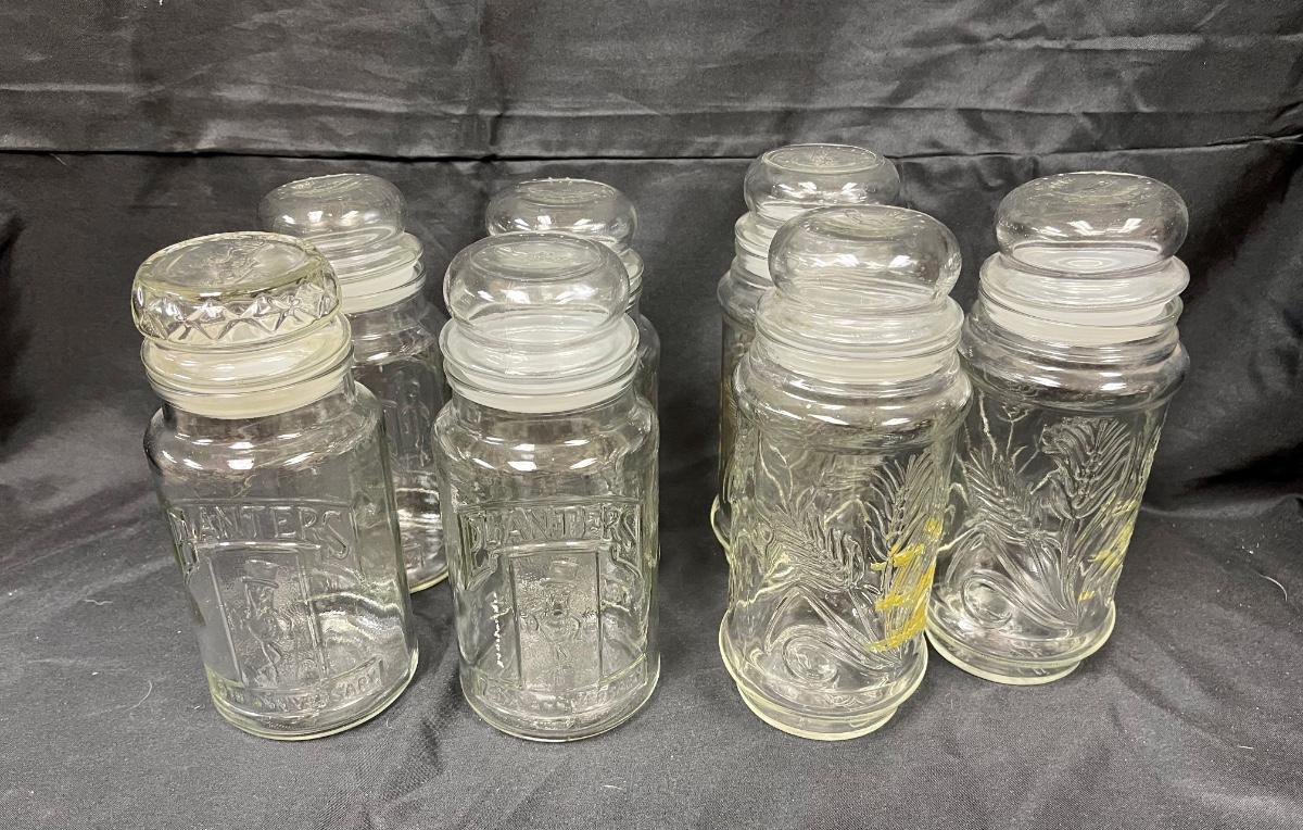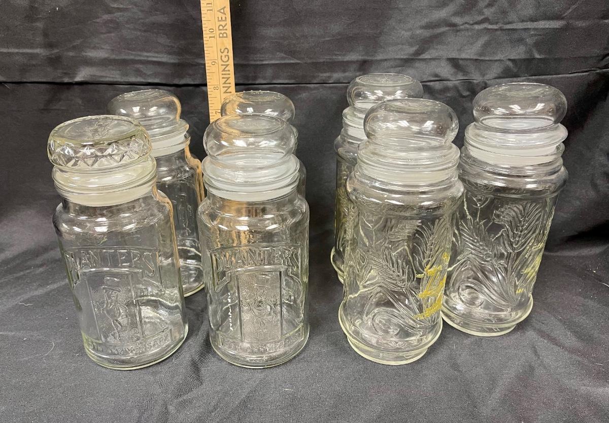 1981 1982 Planters Peanuts glass jar with pop-off lid 7 piece lot