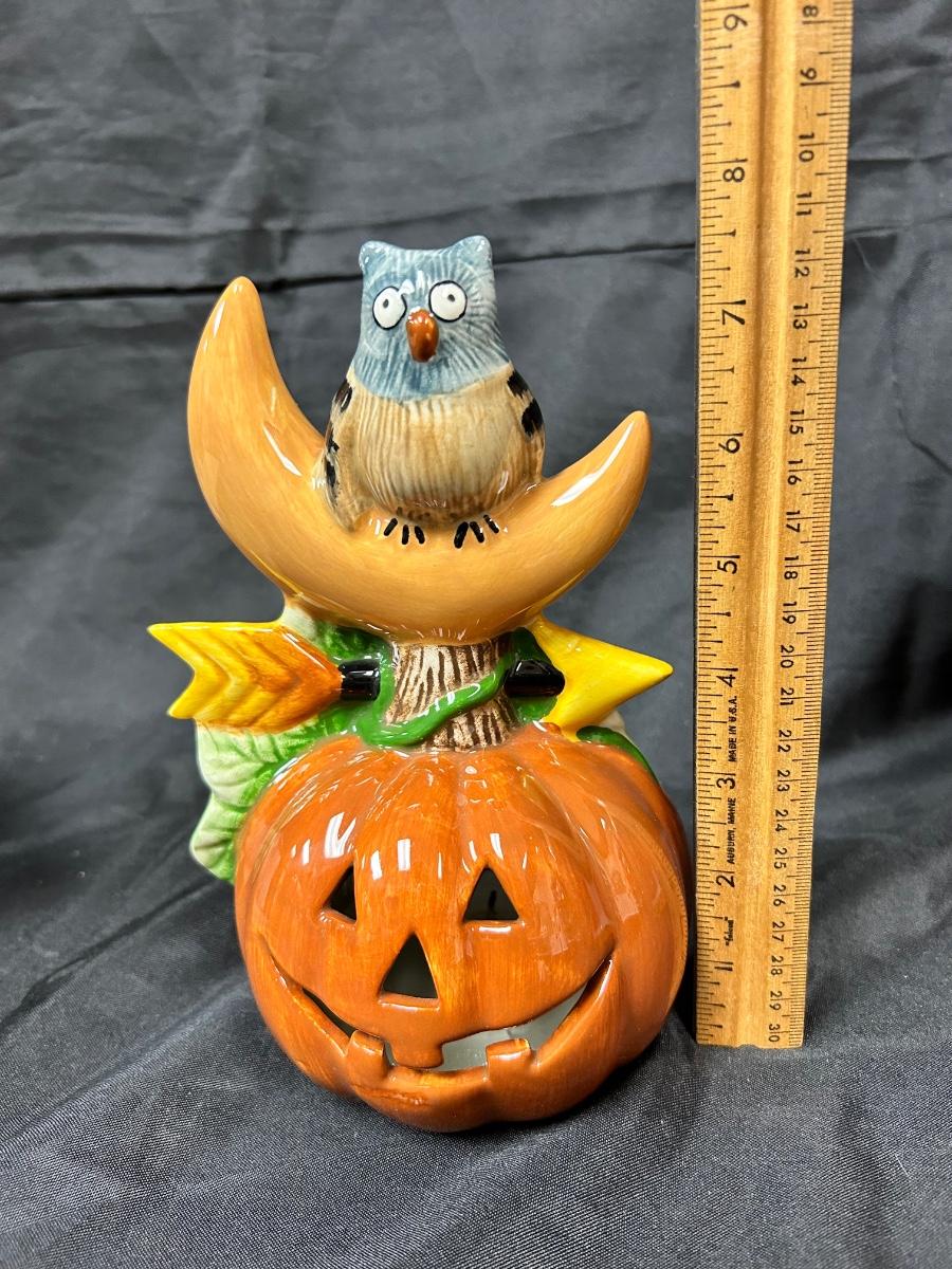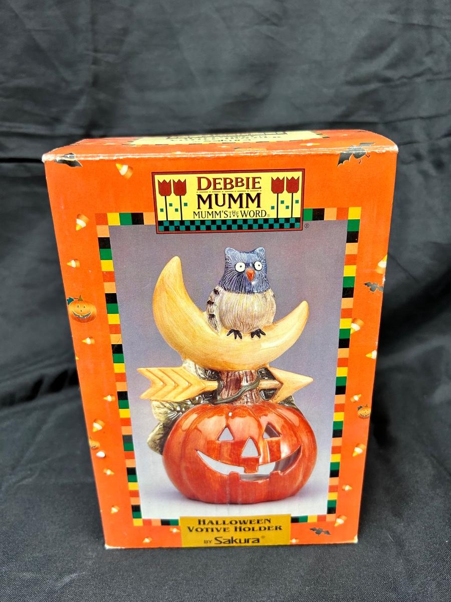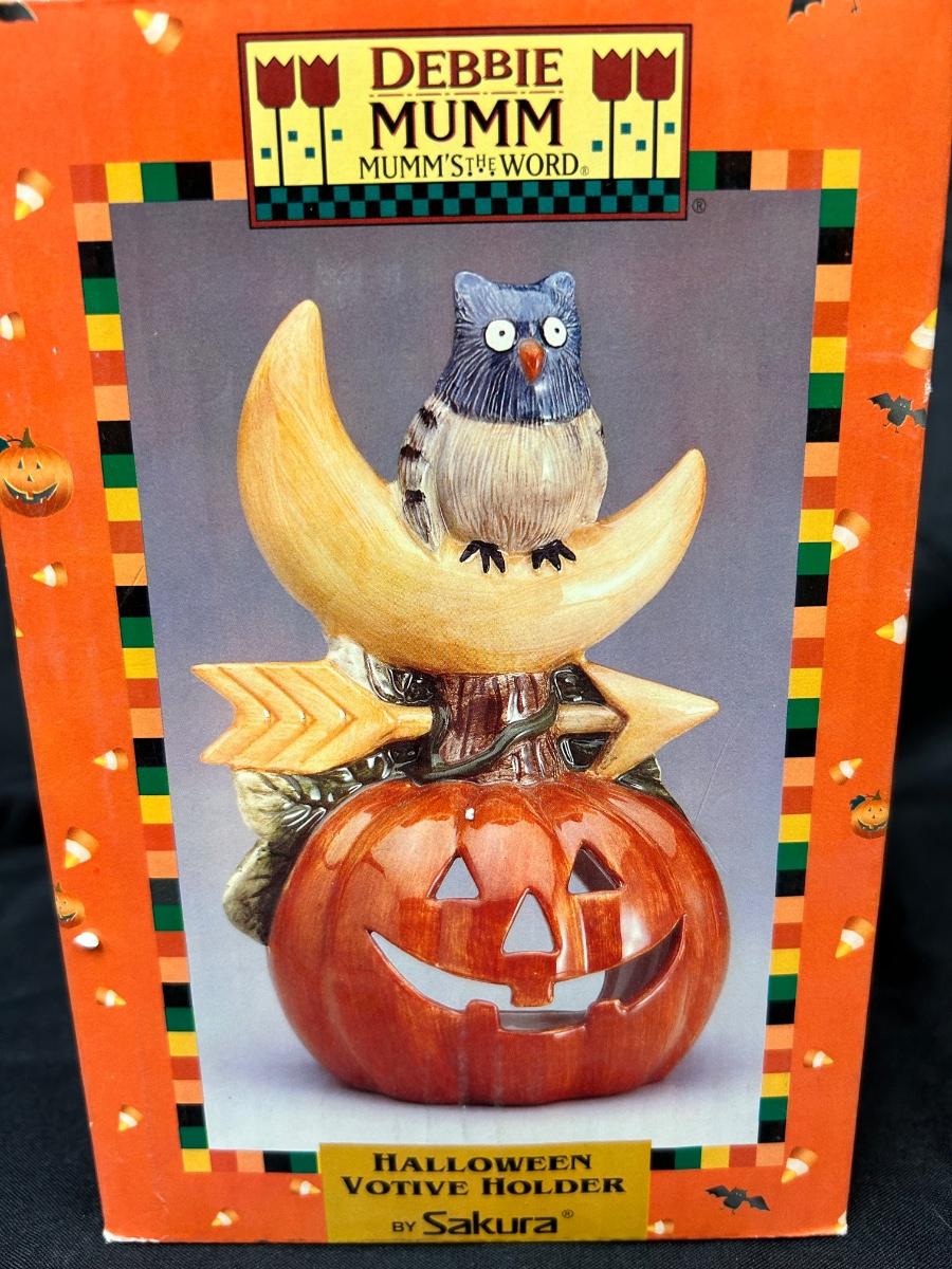 Sakura Debbie Mumm Halloween Votive Candle Holder Jack-o-lantern Moon Owl. In good used condition. Comes in original box.