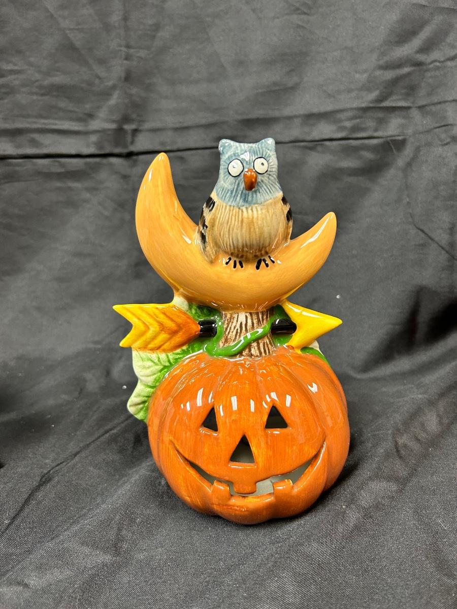 Sakura Debbie Mumm Halloween Votive Candle Holder Jack-o-lantern Moon Owl