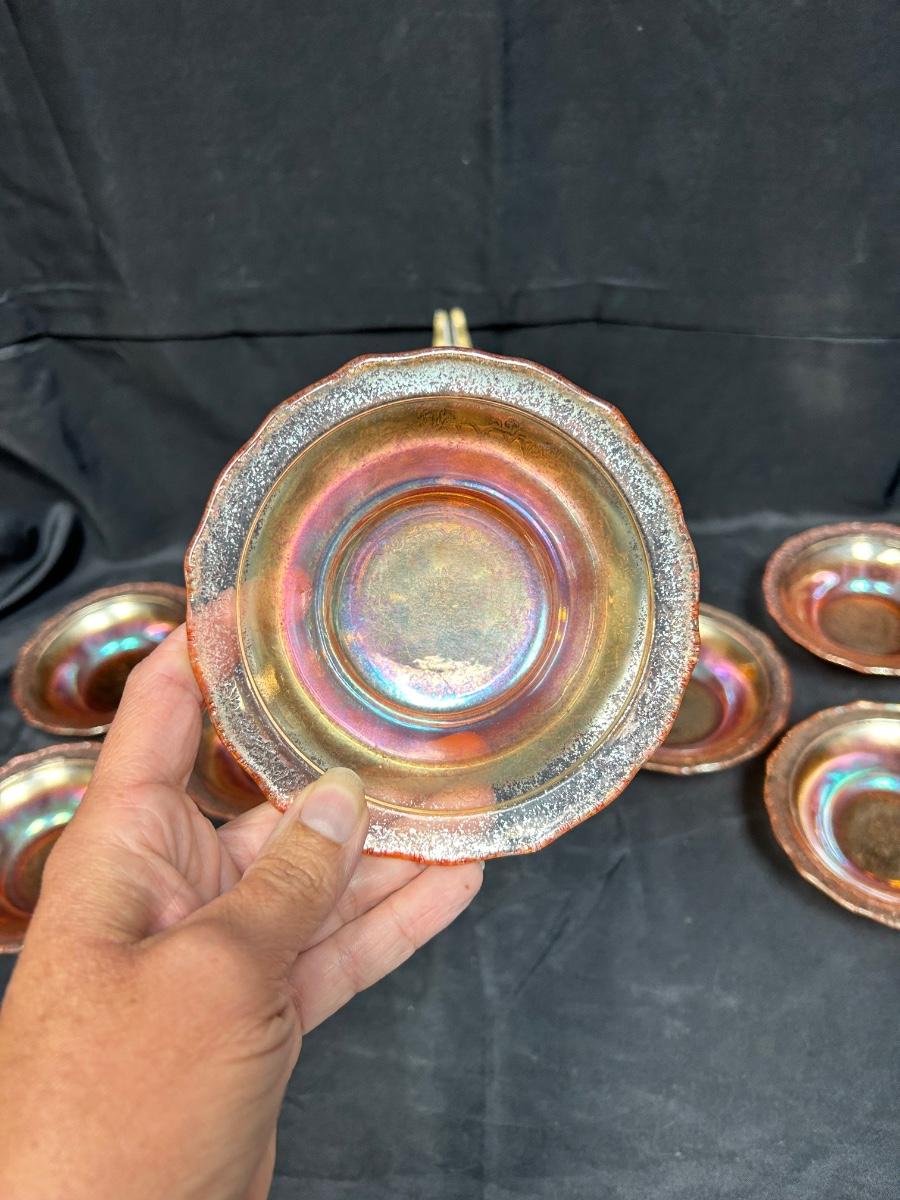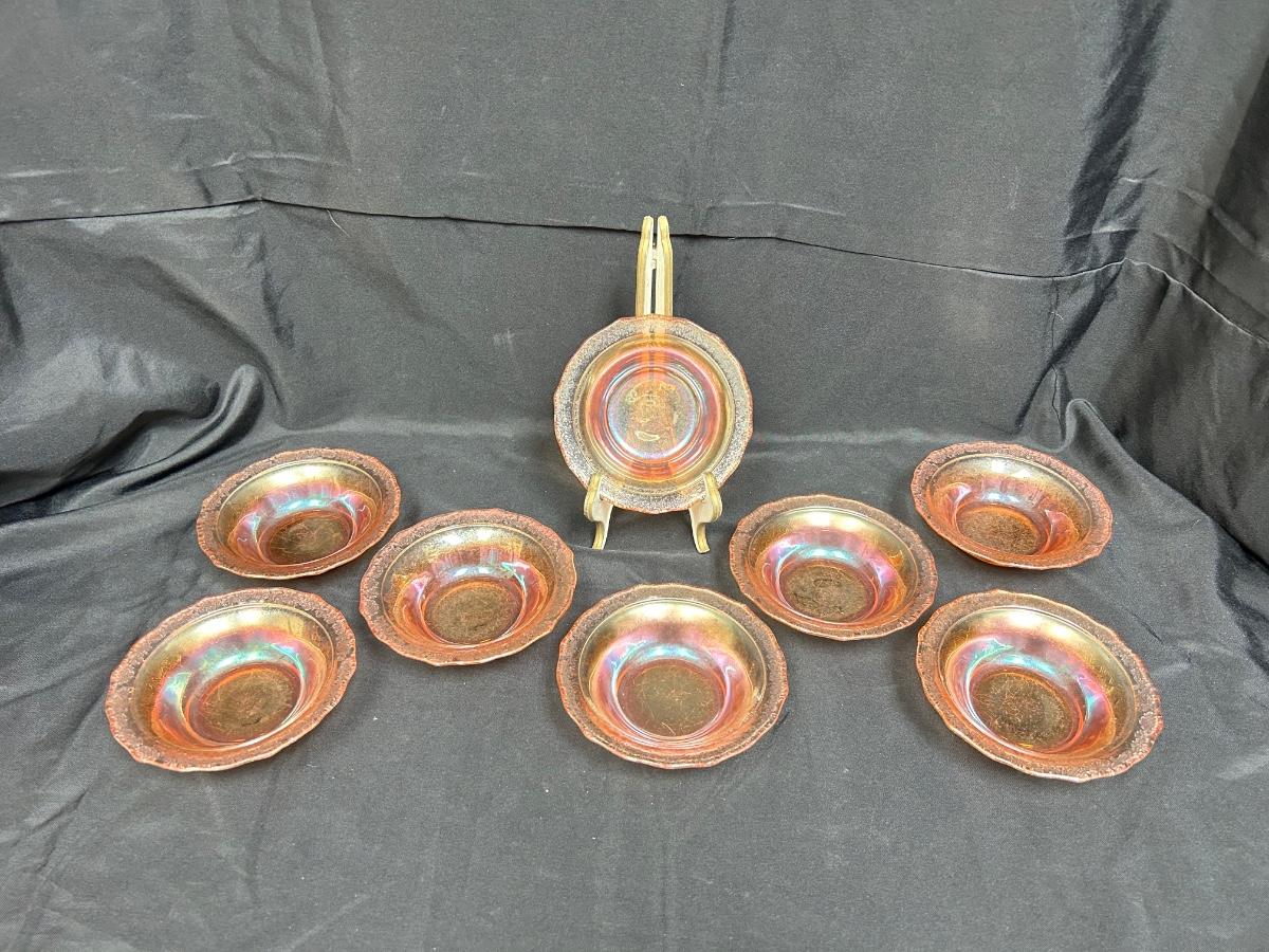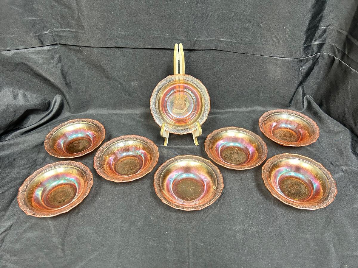 Vintage Marigold Carnival Glass Fruit Bowl Ice Cream Dessert Dishes Set of 8