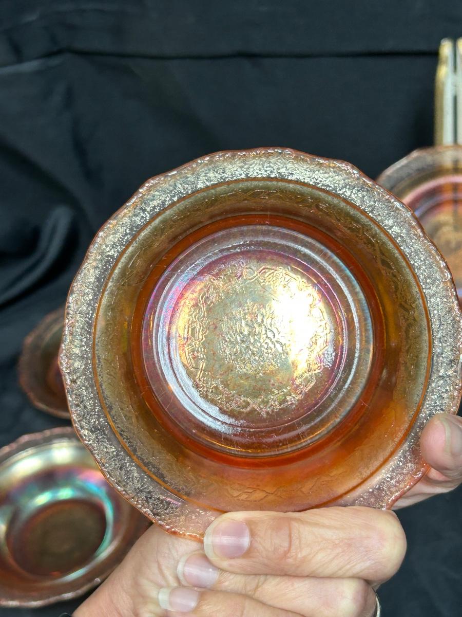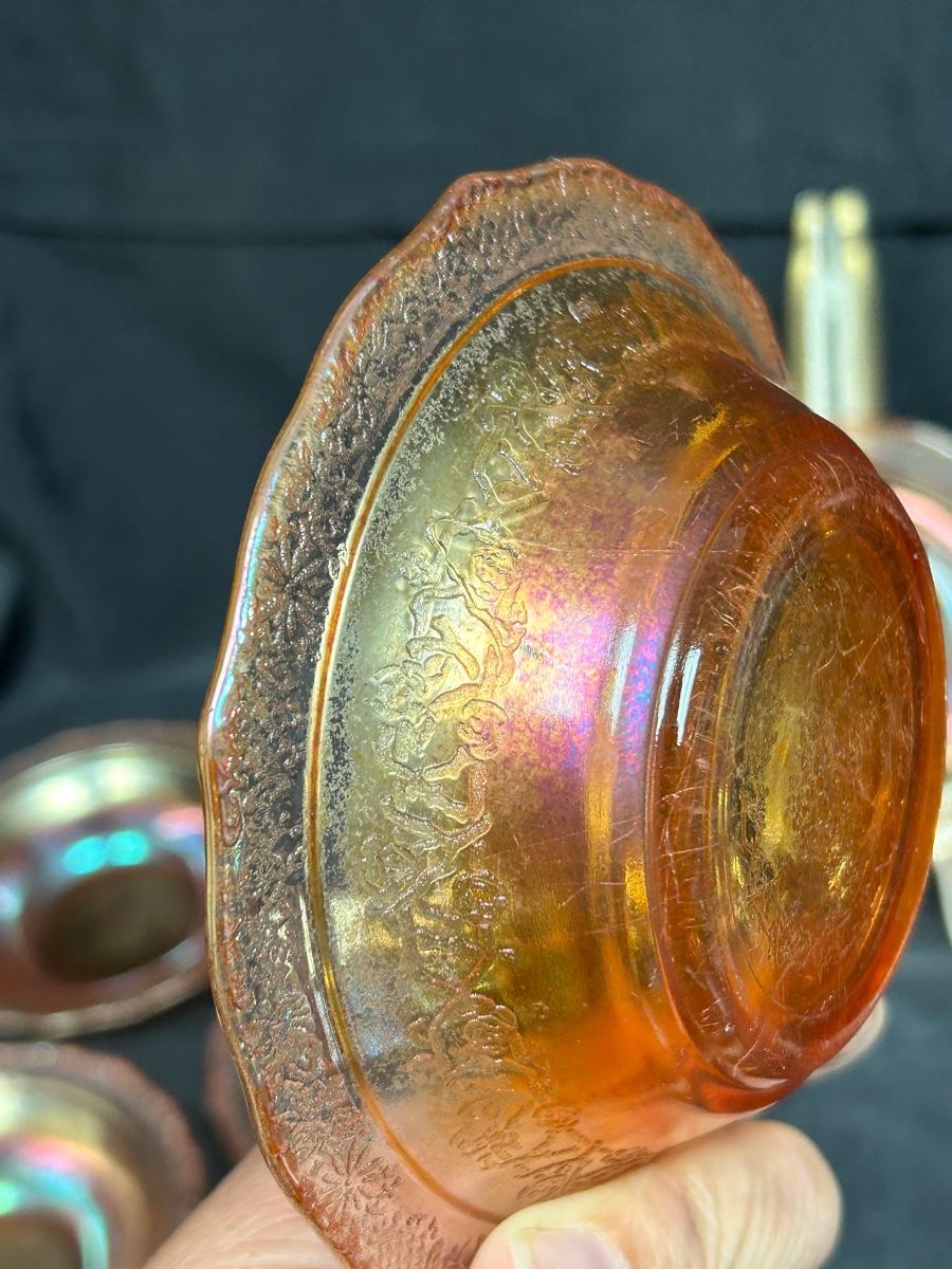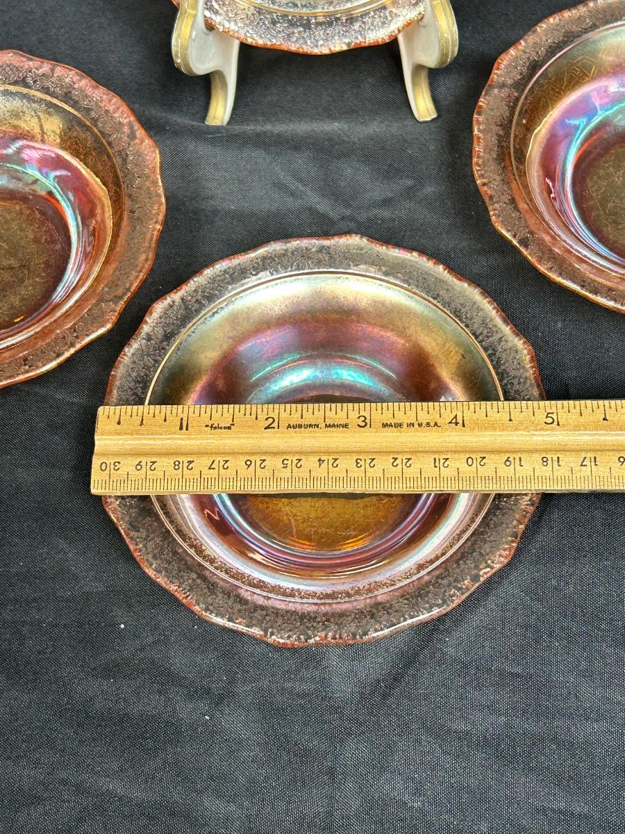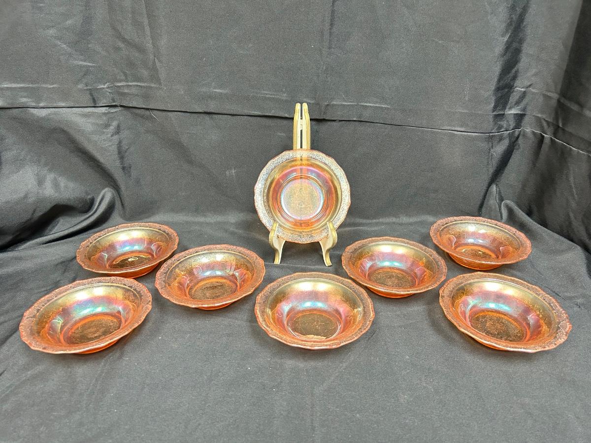 Vintage Marigold Carnival Glass Fruit Bowl Ice Cream Dessert Dishes Set of 8