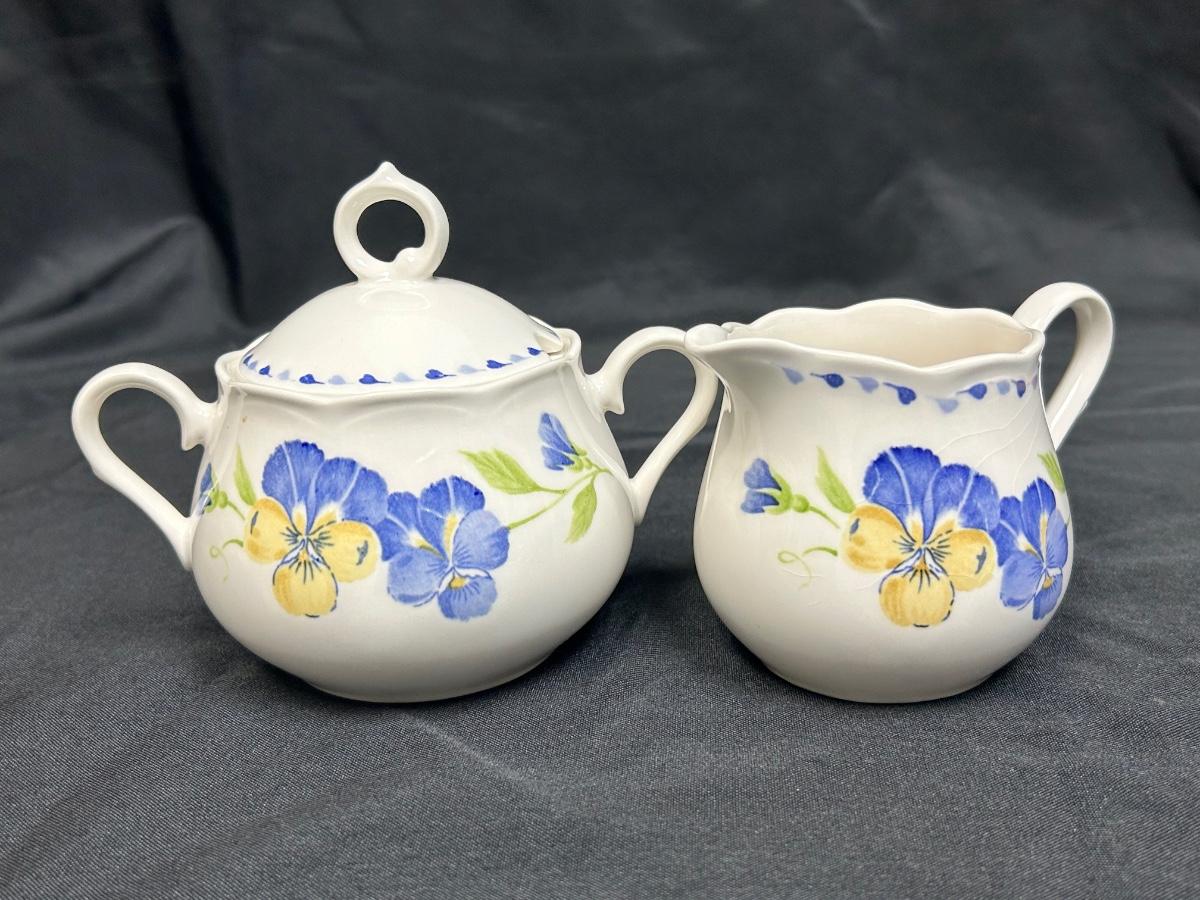 Casual Living Nikko Tableware Pansy Flower Floral Creamer and Lidded Sugar Bowl