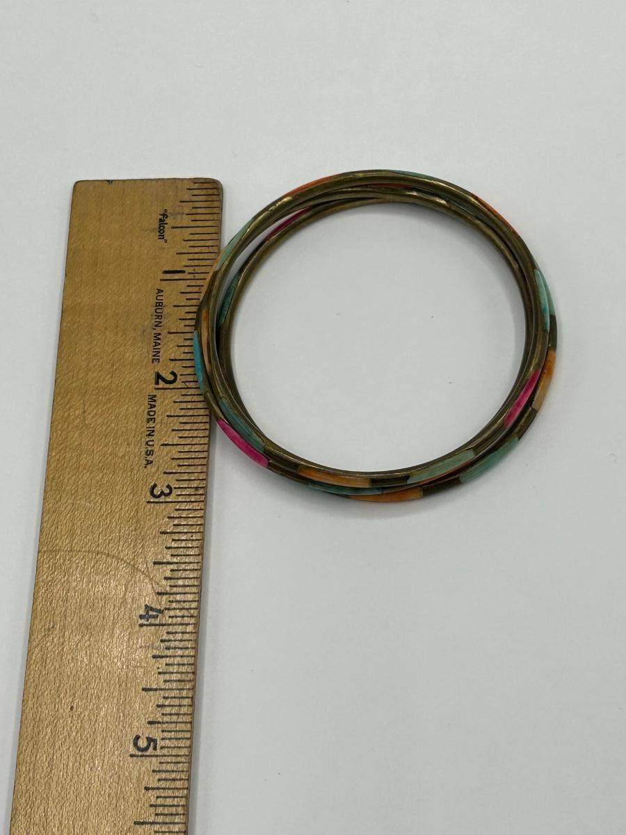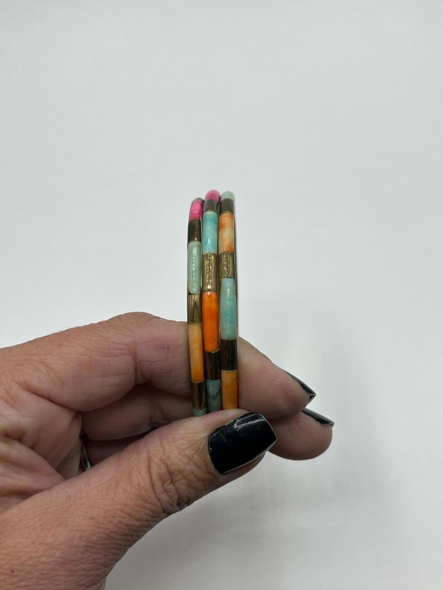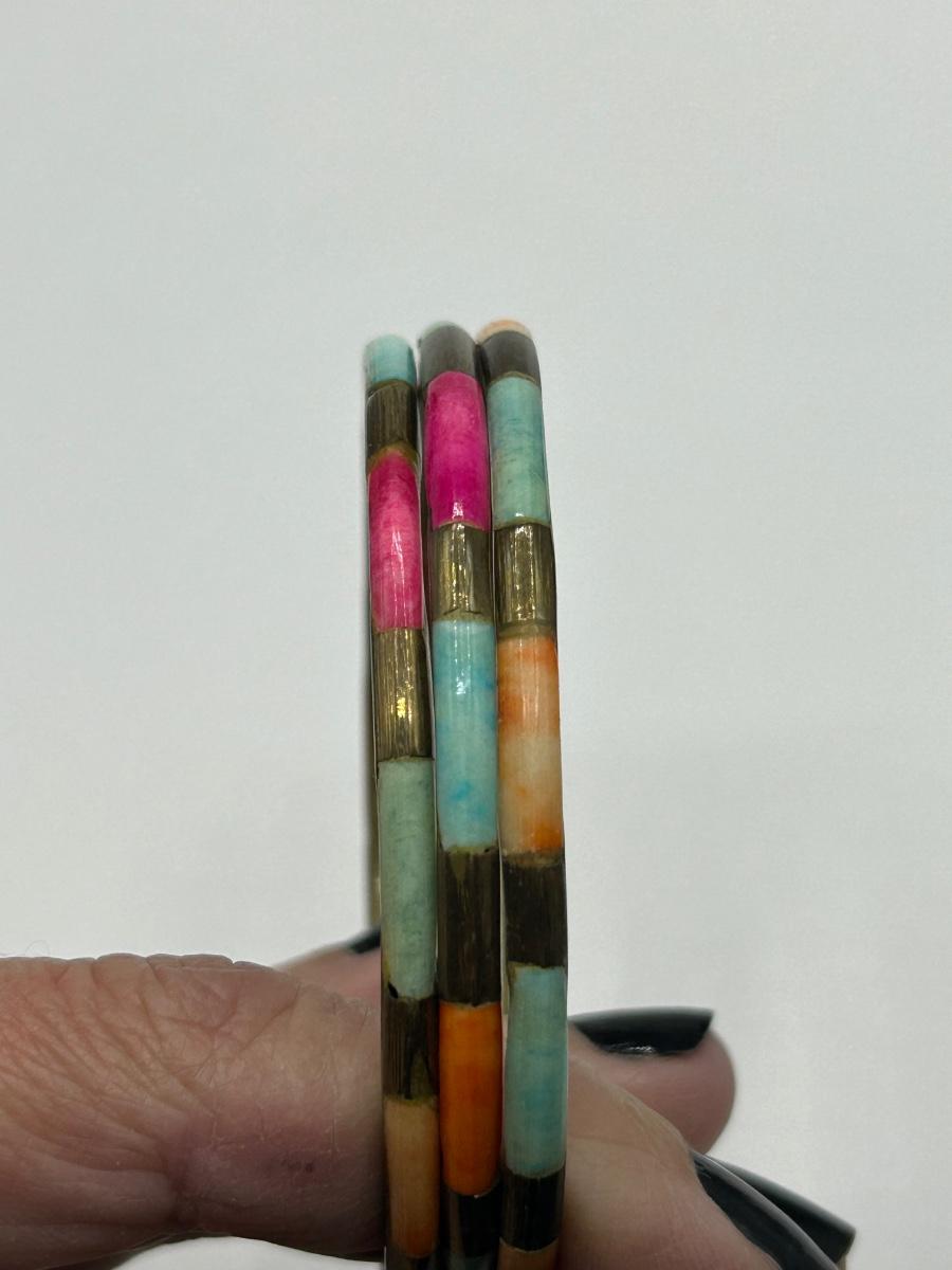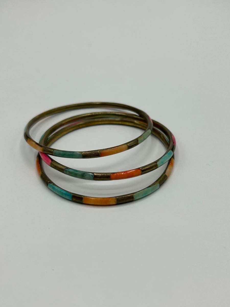 Set of Three Color Block Enamel and Metal Bangle Bracelets