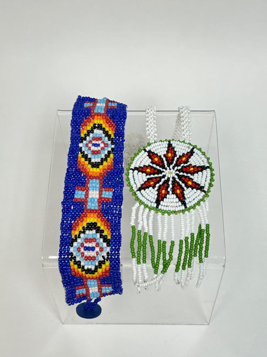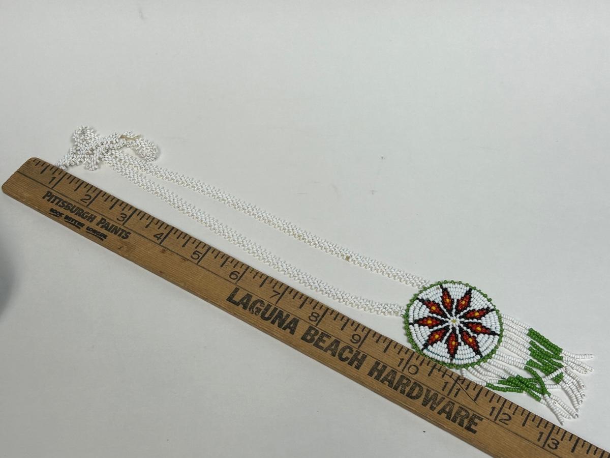 Hand Made Southwestern Native American Beaded Bracelet and Medallion Necklace. Both are in good condition.
