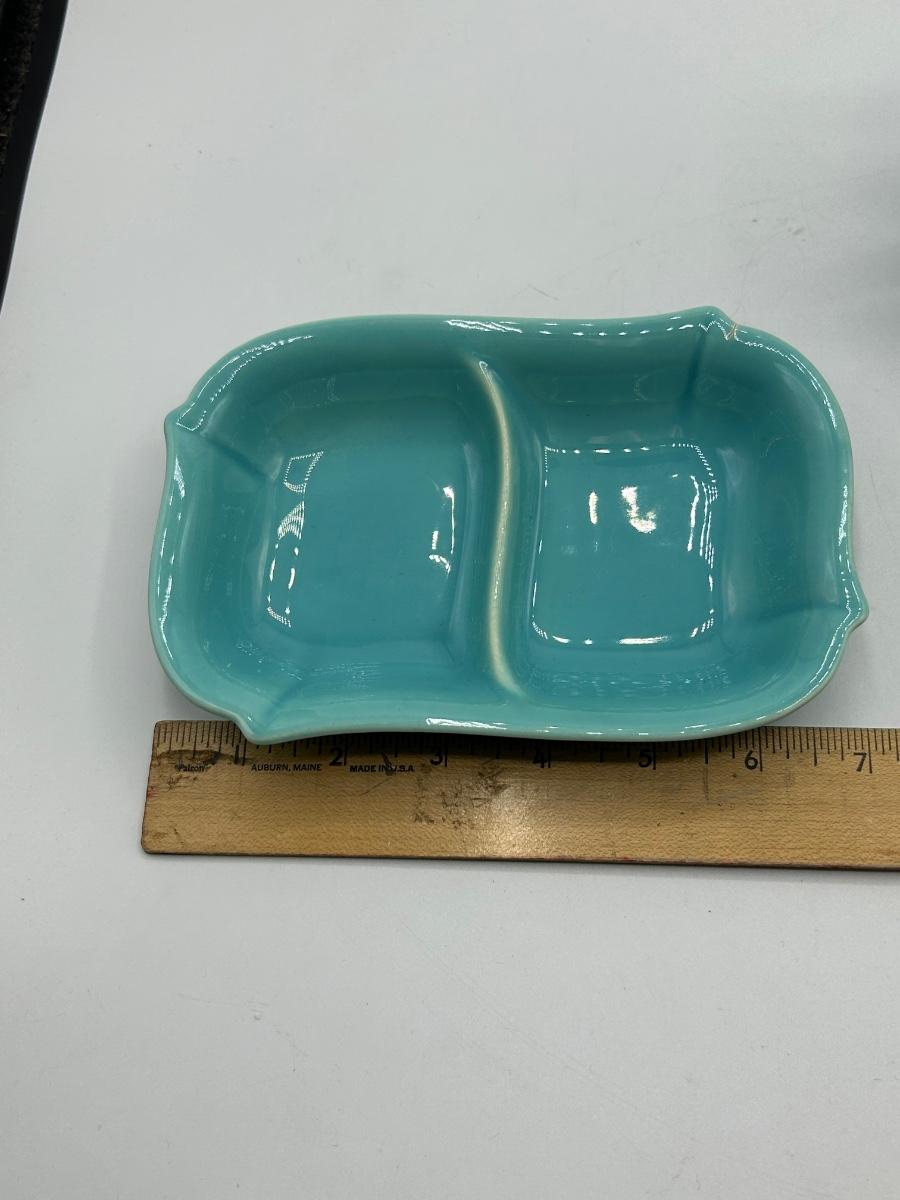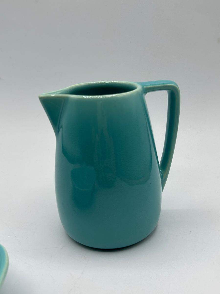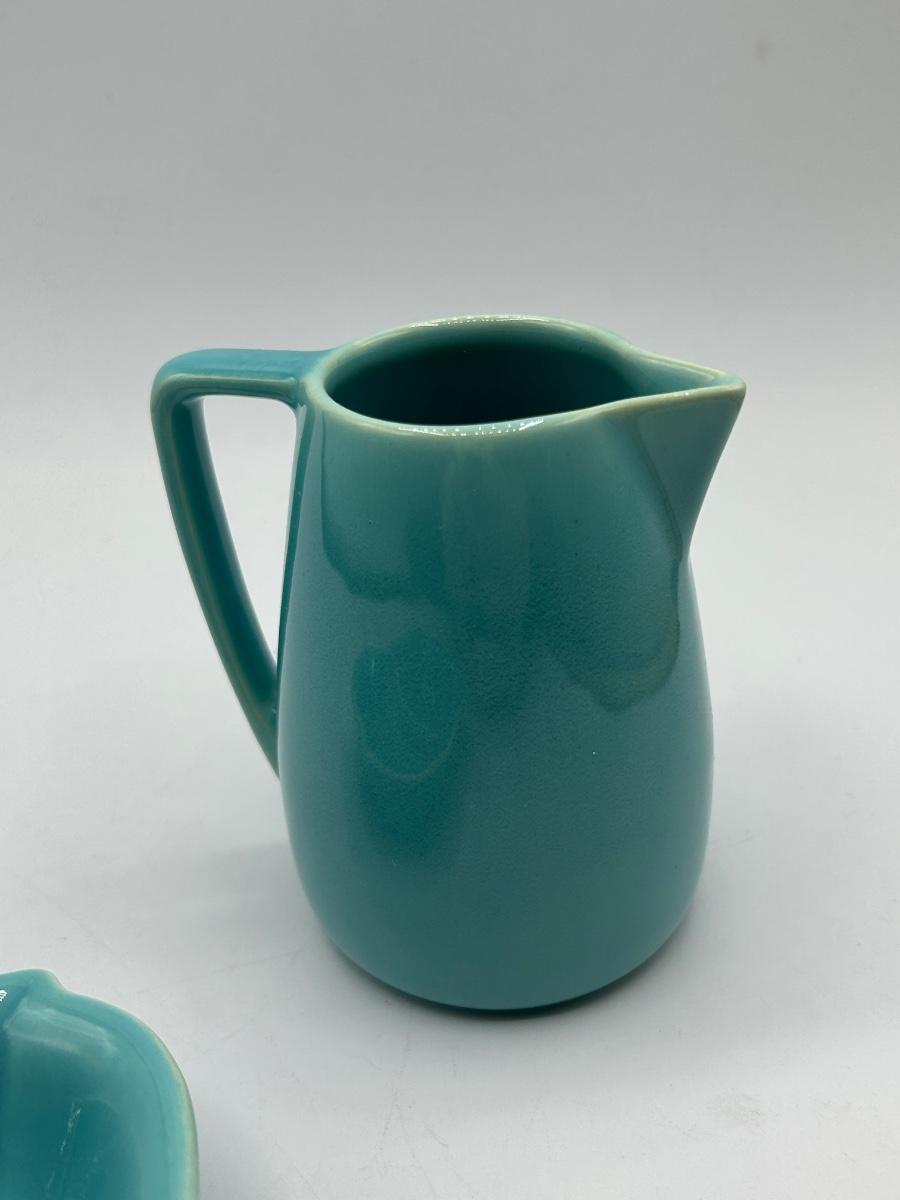 Vintage Franciscan Ware California Pottery Divided Small Dish and Cream Pitcher Turquoise Blue. In good vintage condition.