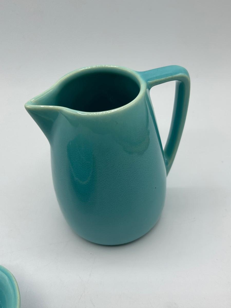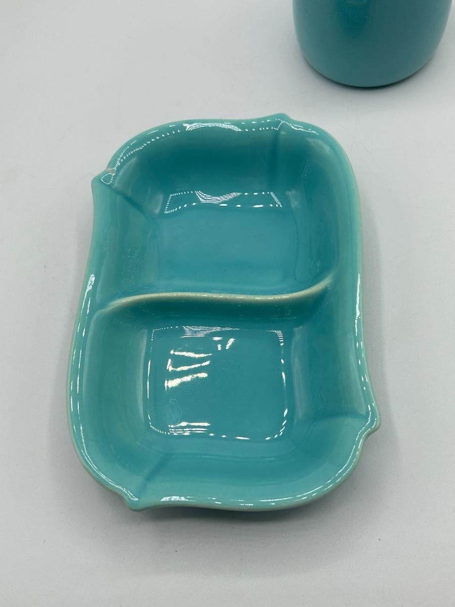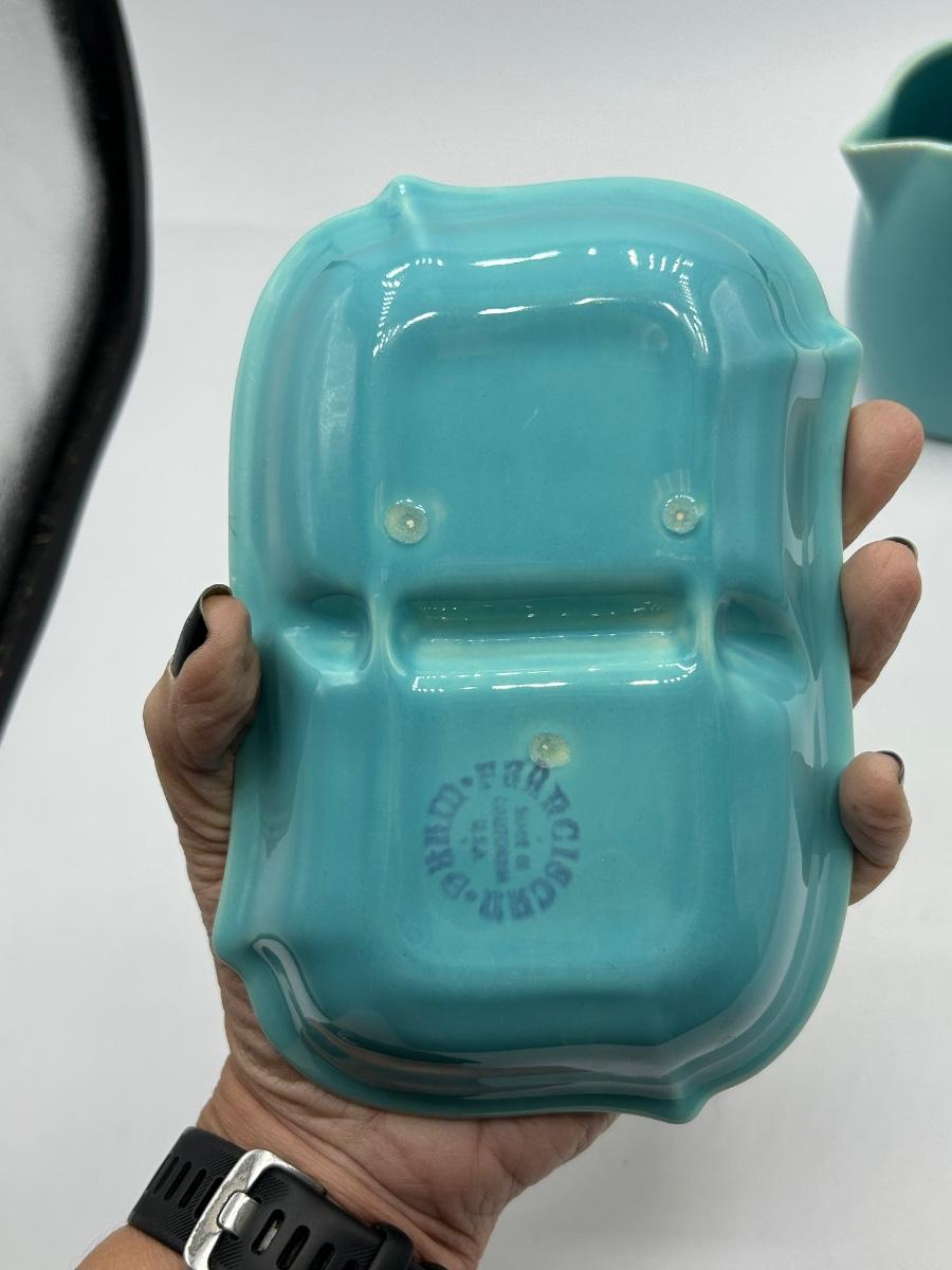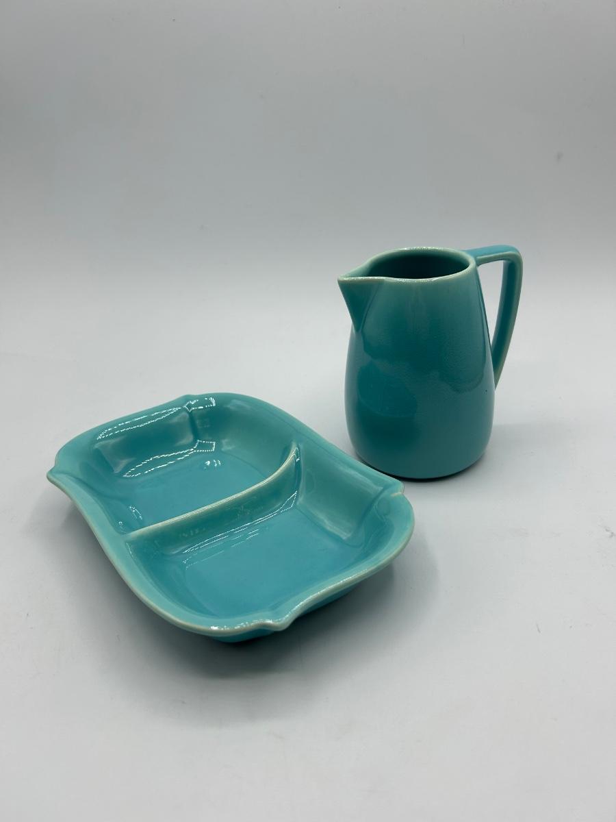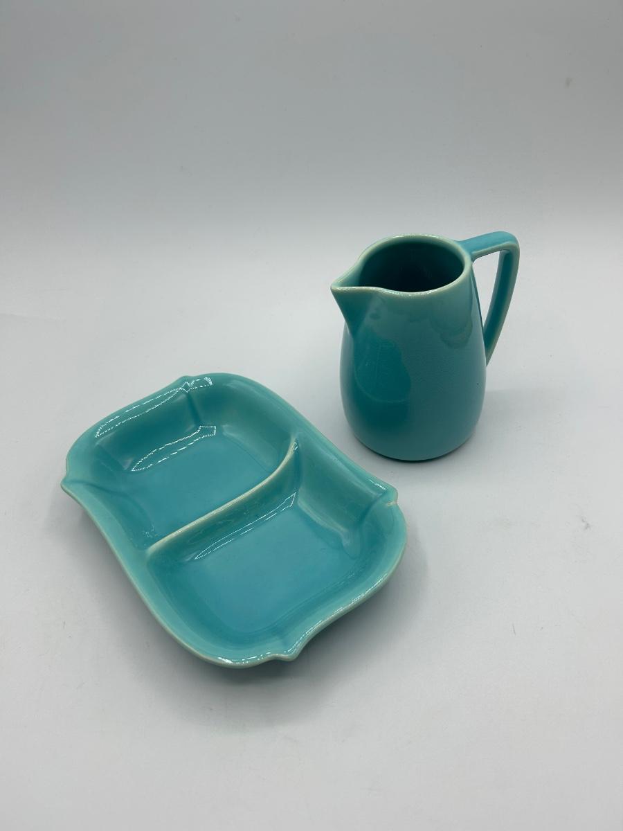 Vintage Franciscan Ware California Pottery Divided Small Dish and Cream Pitcher Turquoise Blue